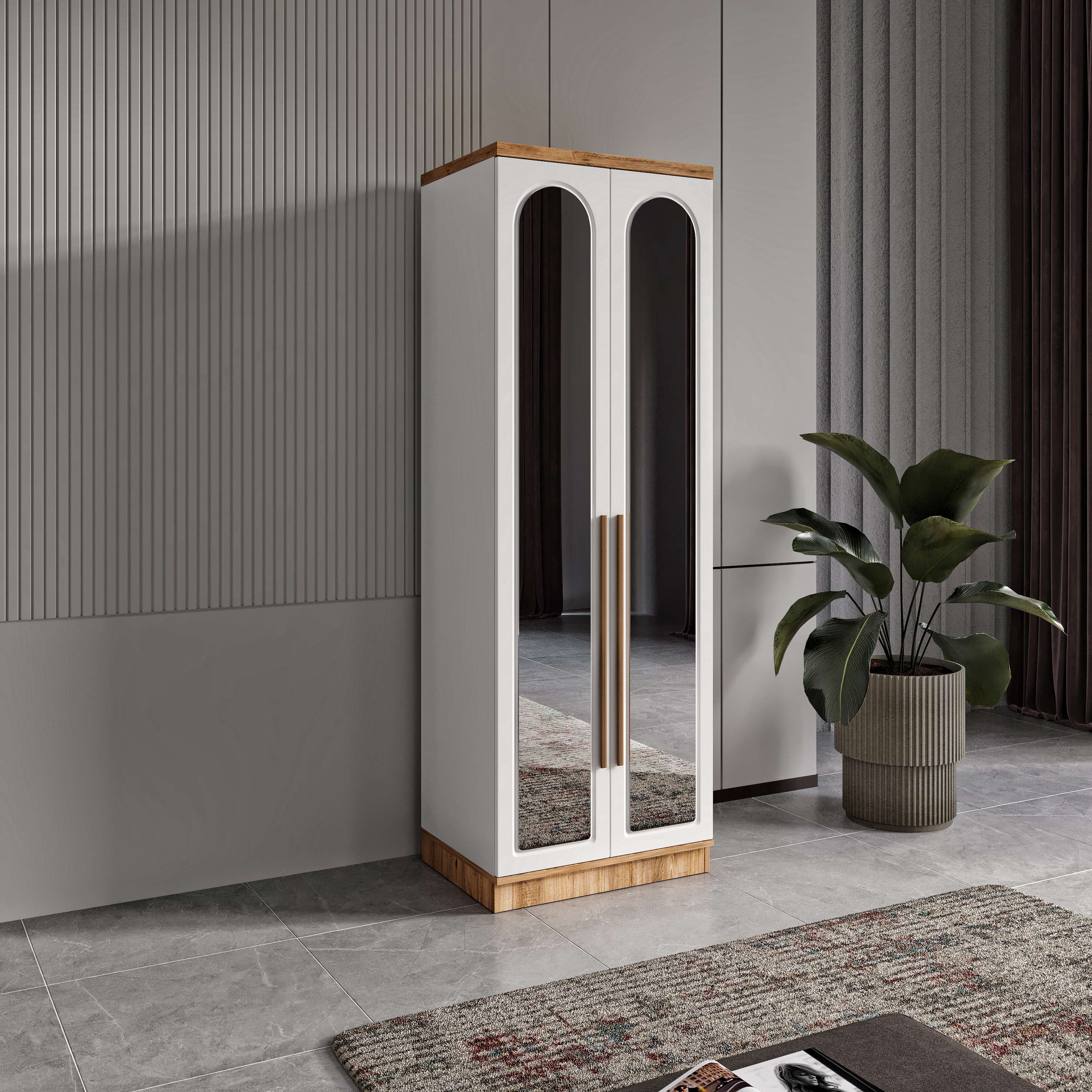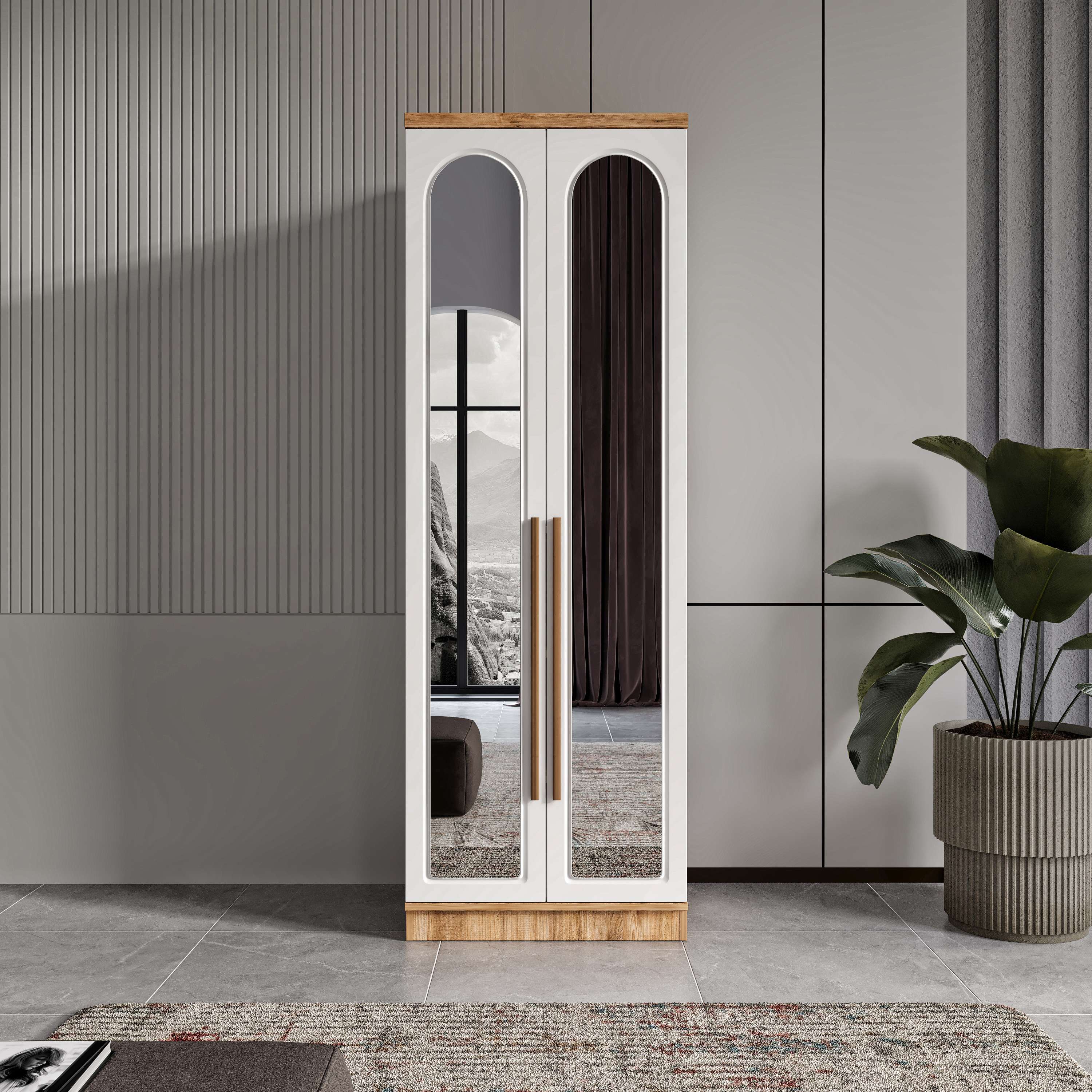 Seronay Floren 2 Kapaklı Aynalı Gardırop, yaşam alanında düzen ve estetiği bir araya getiren fonksiyonel bir gardırop modelidir. Depolama ihtiyacına pratik bir çözüm sunarken modern tasarım dili sayesinde yatak odasına dengeli ve şık bir görünüm kazandırır.