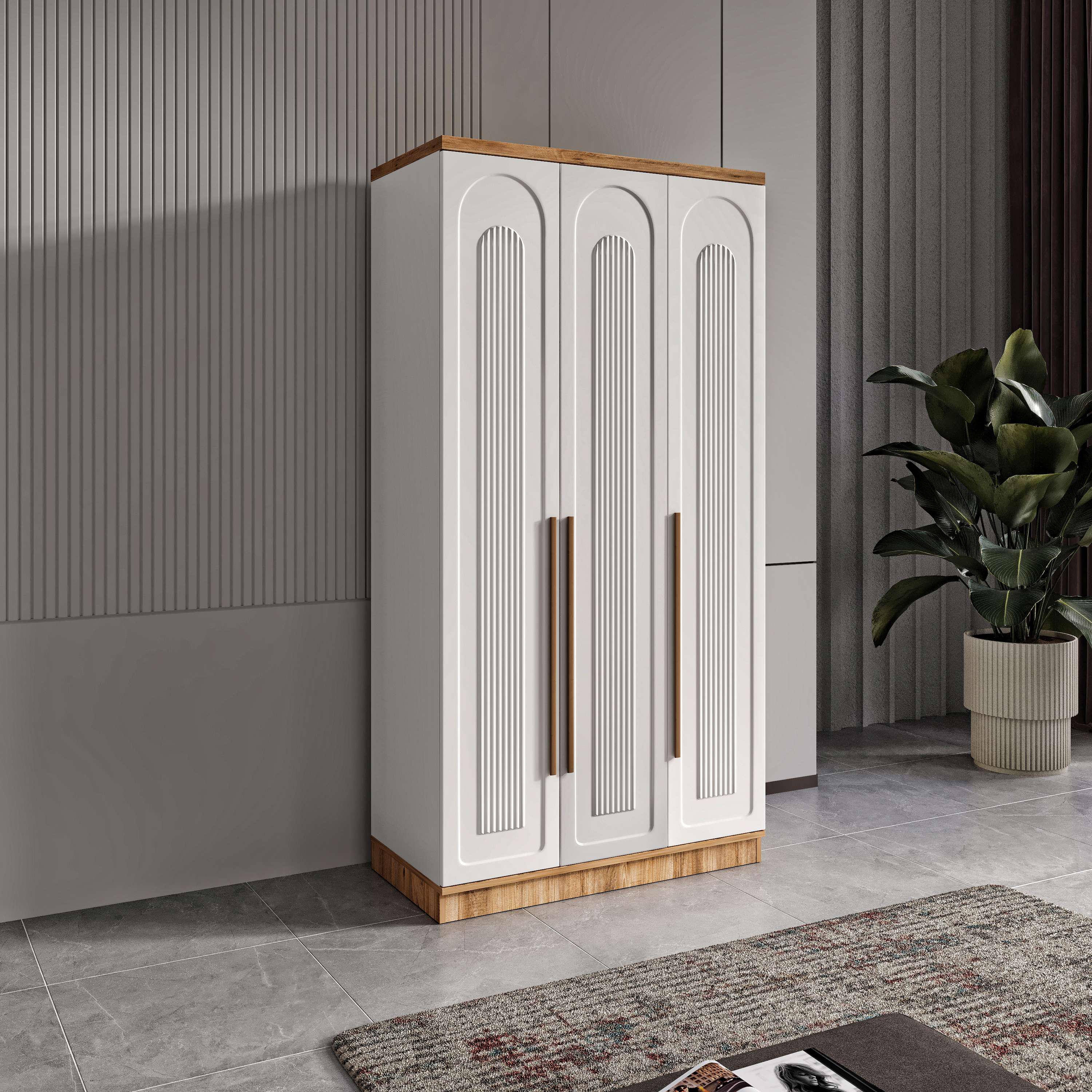 Seronay Floren 3 Kapaklı Gardırop, yaşam alanında düzen ve estetiği bir araya getiren fonksiyonel bir gardırop modelidir. Depolama ihtiyacına pratik bir çözüm sunarken modern tasarım dili sayesinde yatak odasına dengeli ve şık bir görünüm kazandırır.
