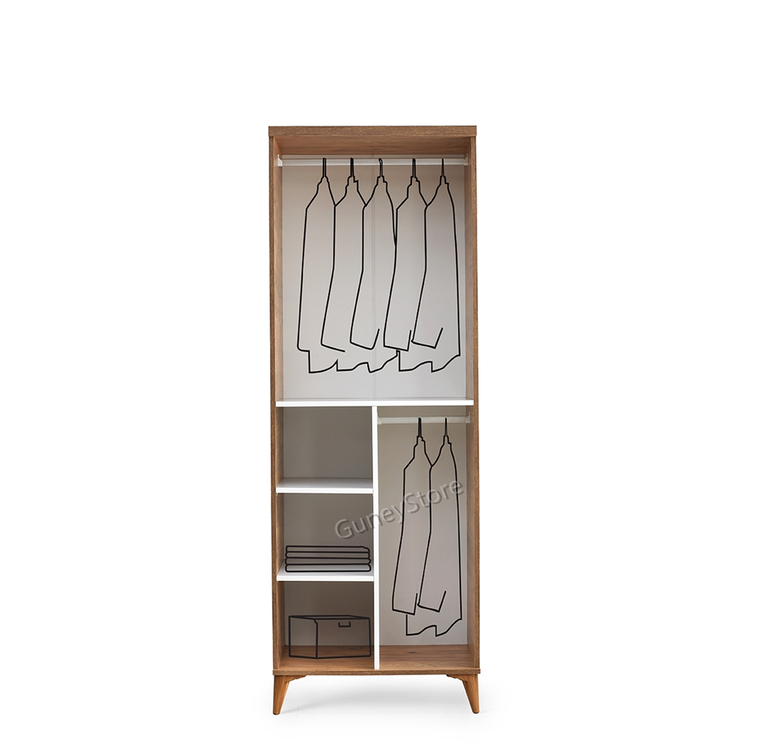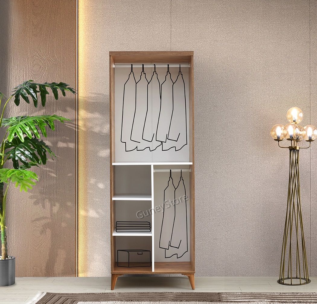 - İç tasarım: askı borusu ve raf kombinasyonu