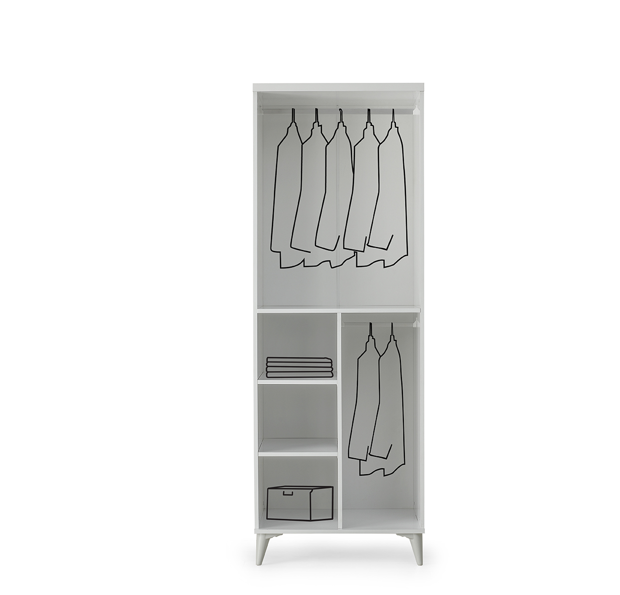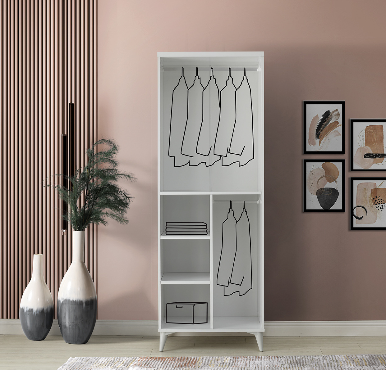 - İç tasarım: askı borusu ve raf kombinasyonu