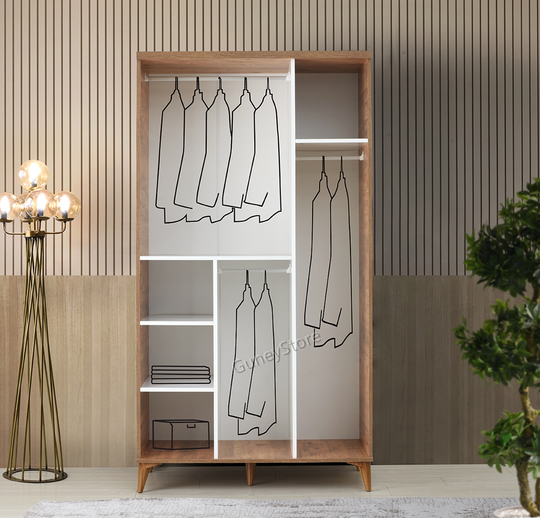 - İç tasarım: askı borusu ve raf kombinasyonu