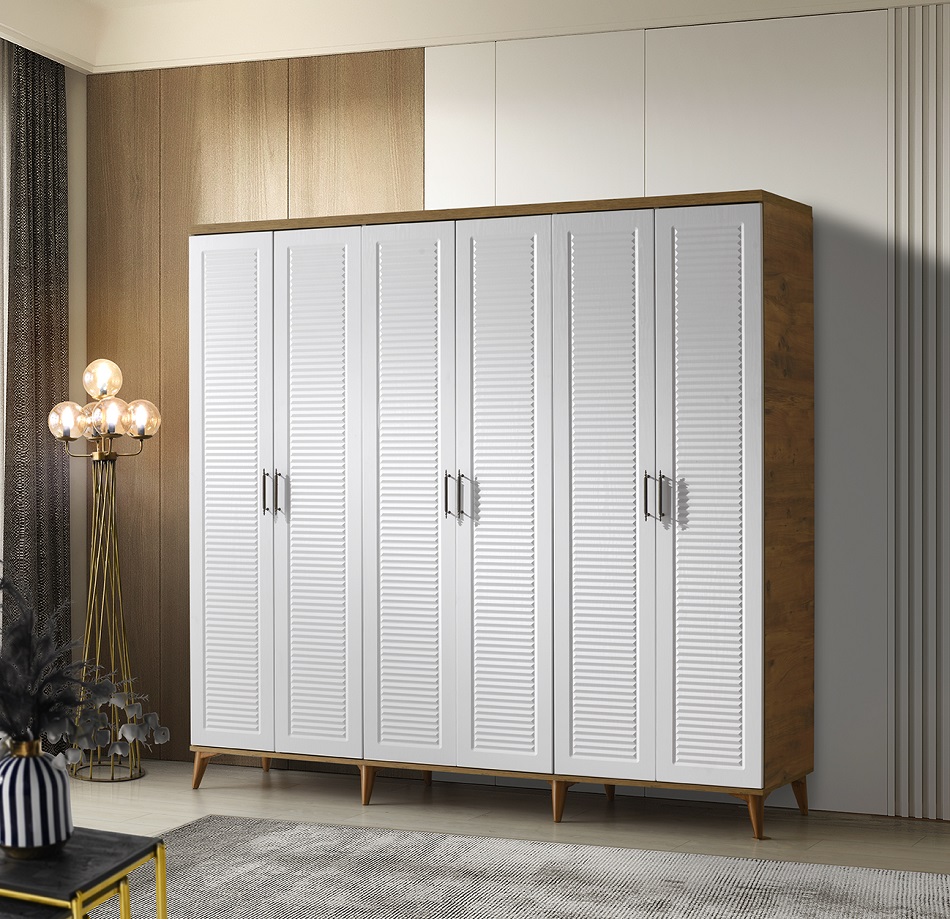 Seronay Lavin 6 Kapaklı Atlantik Çam-Beyaz Gardırop, yaşam alanında düzen ve estetiği bir araya getiren fonksiyonel bir gardırop modelidir. Depolama ihtiyacına pratik bir çözüm sunarken modern tasarım dili sayesinde yatak odasına dengeli ve şık bir görünüm kazandırır.