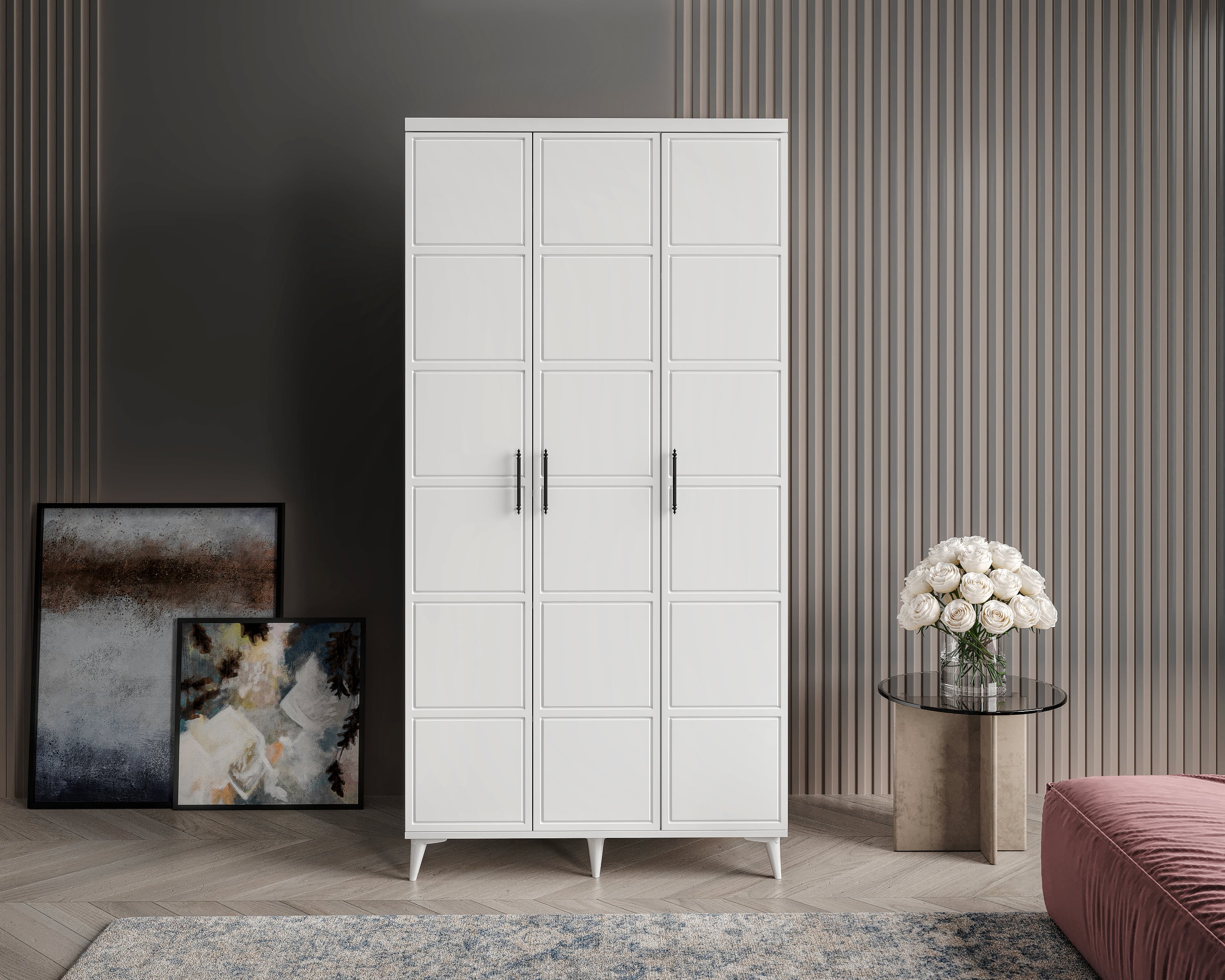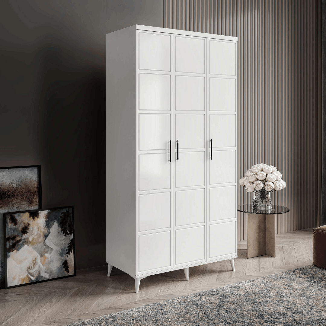 Seronay Lenza 3 Kapaklı Beyaz Gardırop, yaşam alanında düzen ve estetiği bir araya getiren fonksiyonel bir gardırop modelidir. Depolama ihtiyacına pratik bir çözüm sunarken modern tasarım dili sayesinde yatak odasına dengeli ve şık bir görünüm kazandırır.