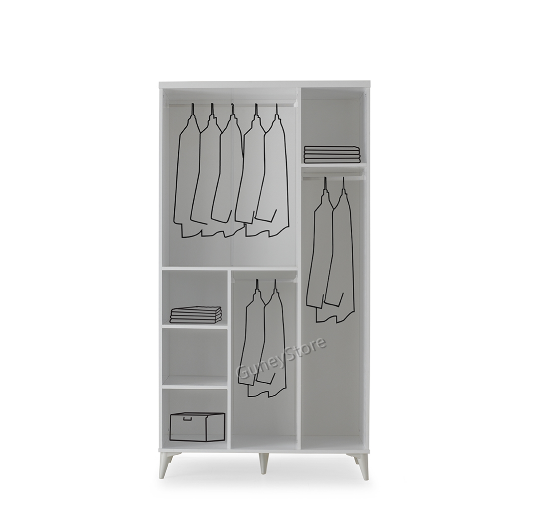 - İç tasarım: askı borusu ve raf kombinasyonu