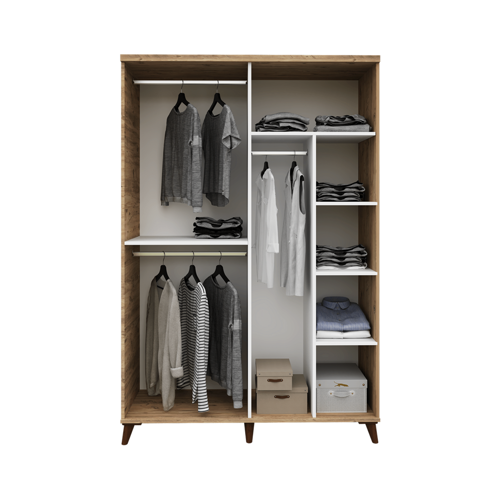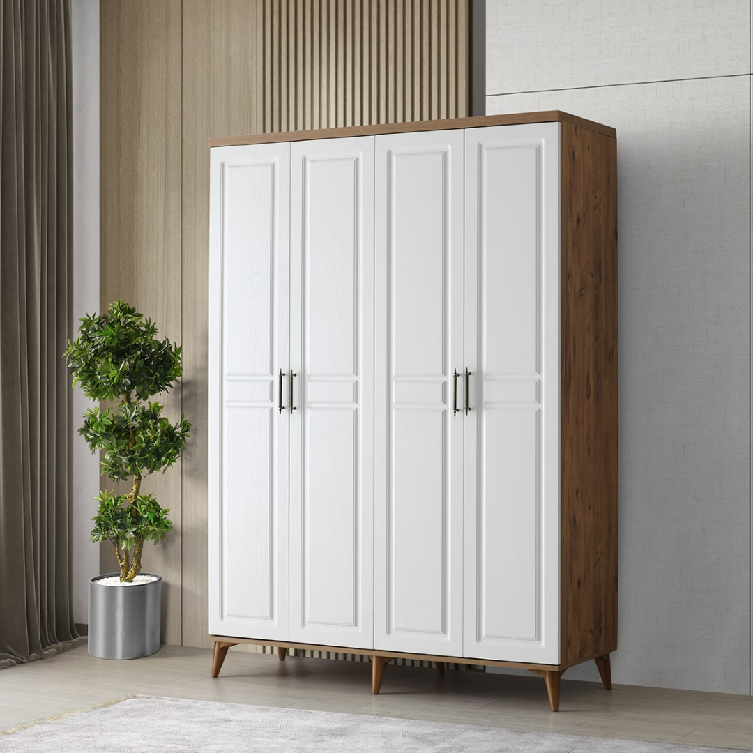 Seronay Lorin 4 Kapaklı Atlantik Çam-Beyaz Gardırop, yaşam alanında düzen ve estetiği bir araya getiren fonksiyonel bir gardırop modelidir. Depolama ihtiyacına pratik bir çözüm sunarken modern tasarım dili sayesinde yatak odasına dengeli ve şık bir görünüm kazandırır.