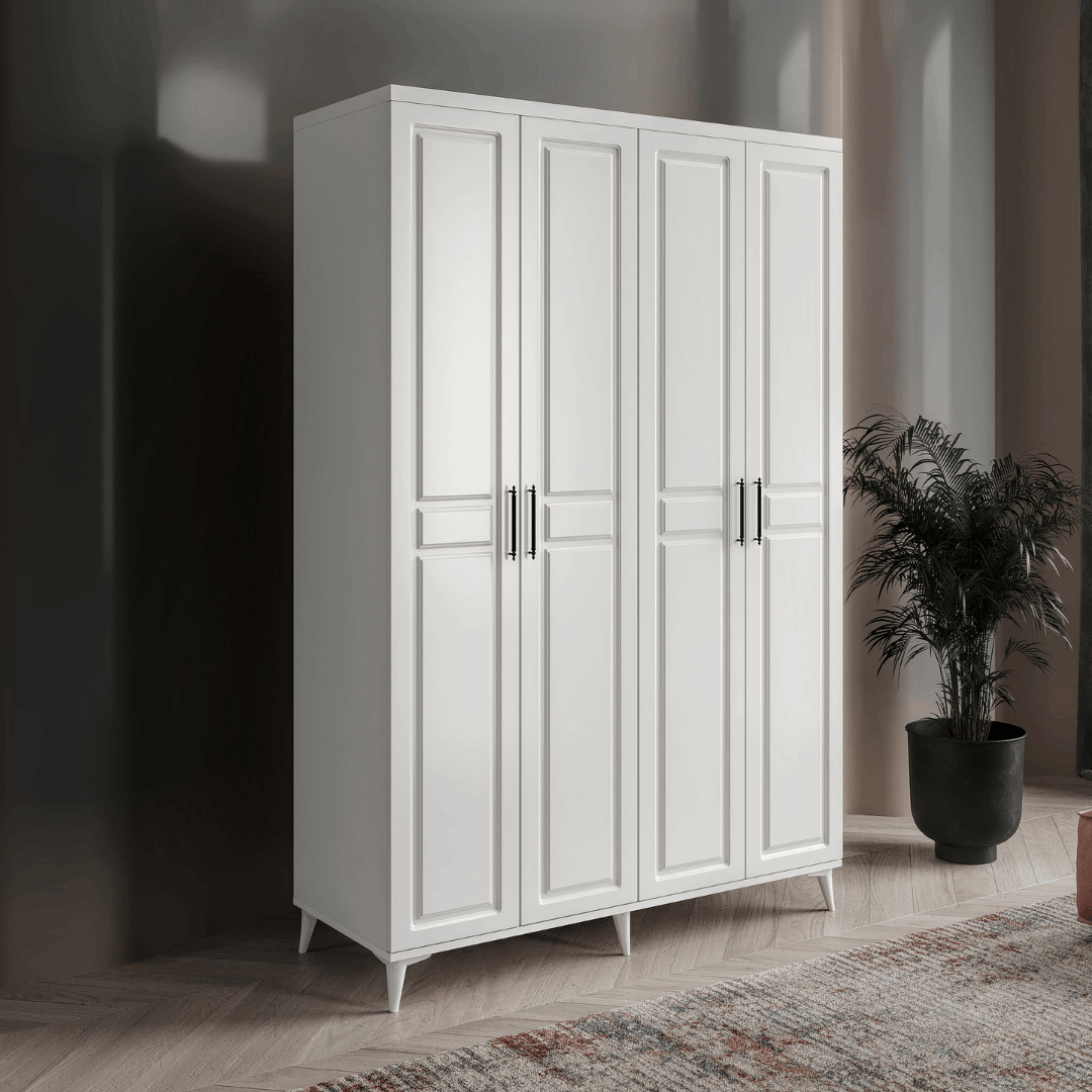 Seronay Lorin 4 Kapaklı Gardırop, yaşam alanında düzen ve estetiği bir araya getiren fonksiyonel bir gardırop modelidir. Depolama ihtiyacına pratik bir çözüm sunarken modern tasarım dili sayesinde yatak odasına dengeli ve şık bir görünüm kazandırır.