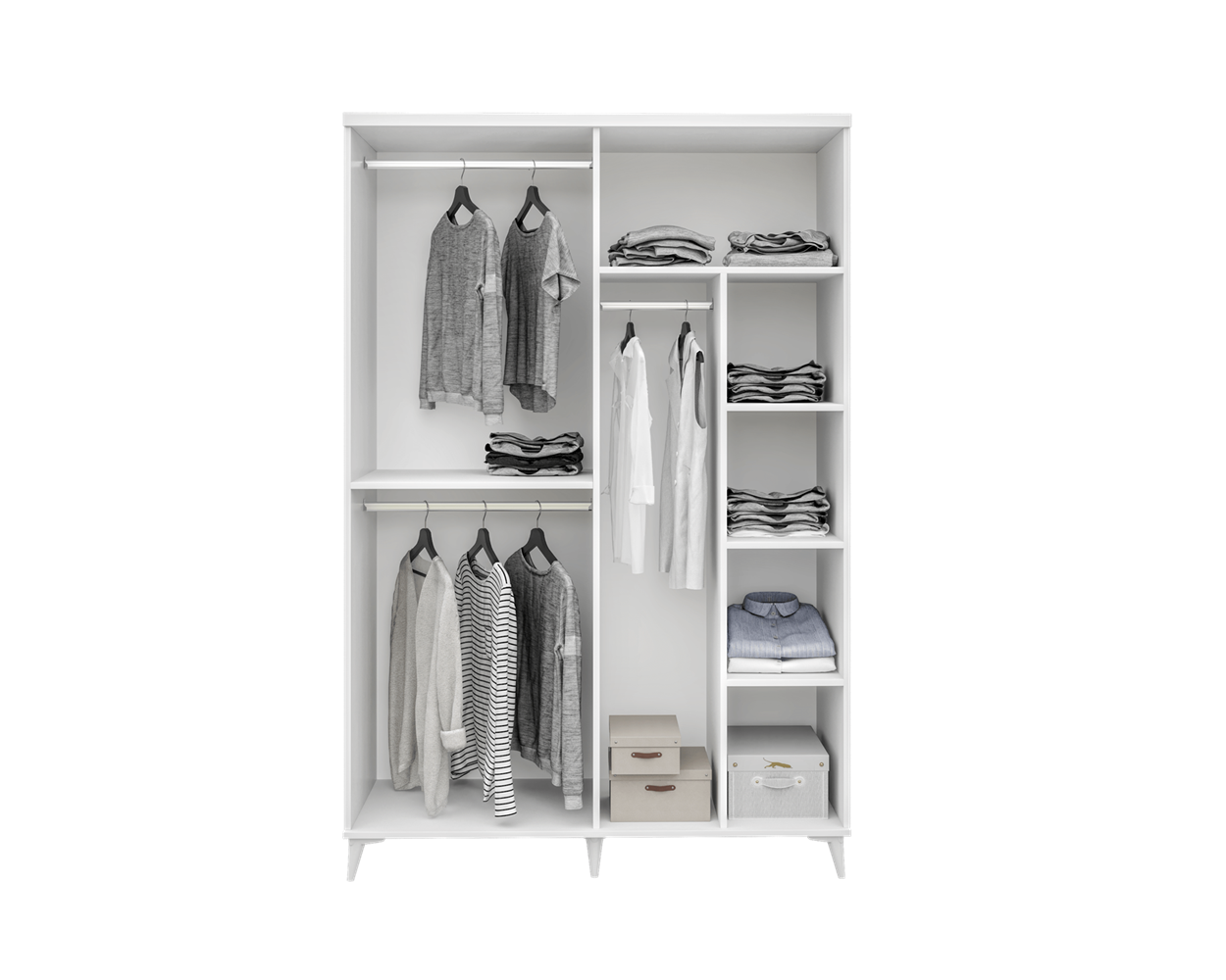 - İç tasarım: askı borusu ve raf kombinasyonu