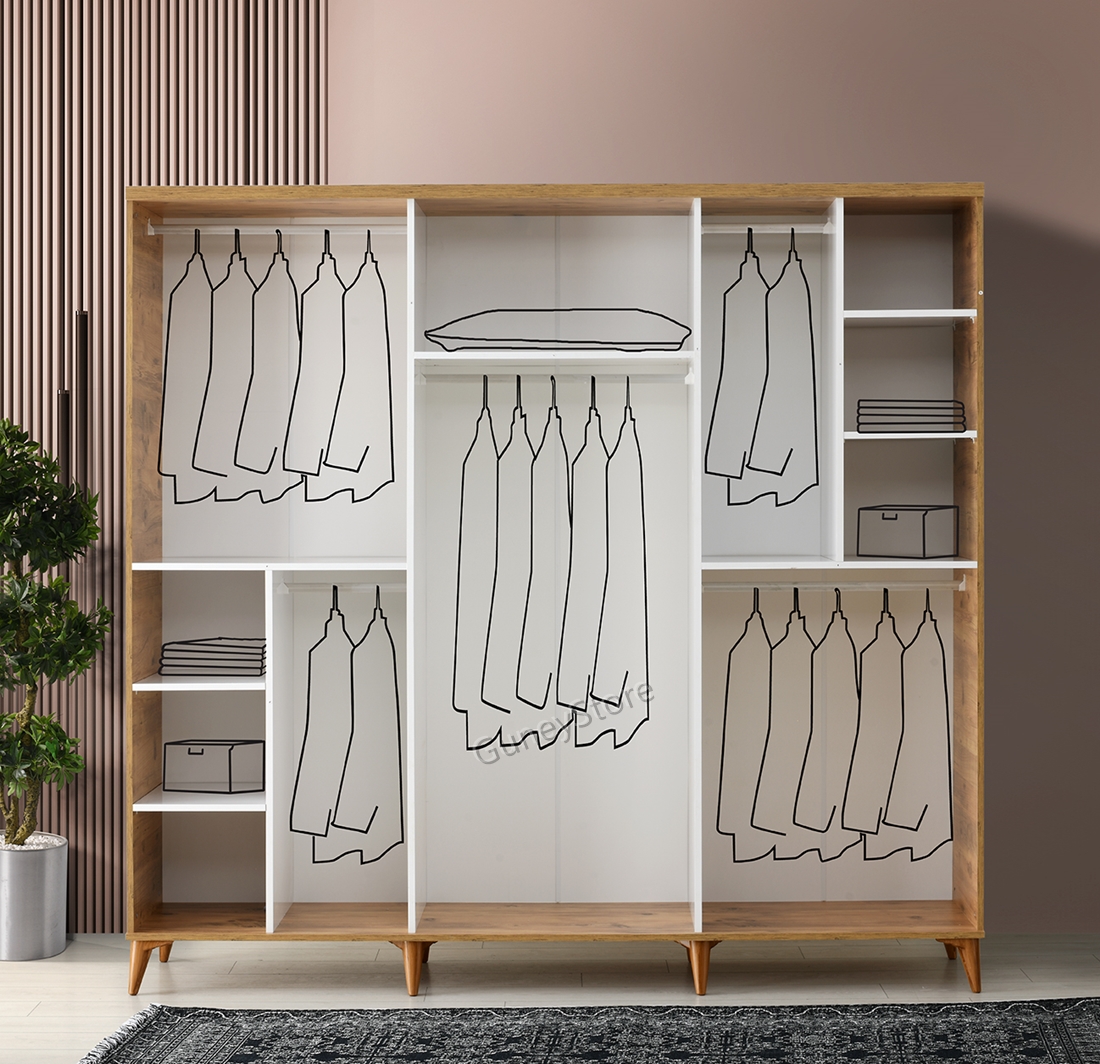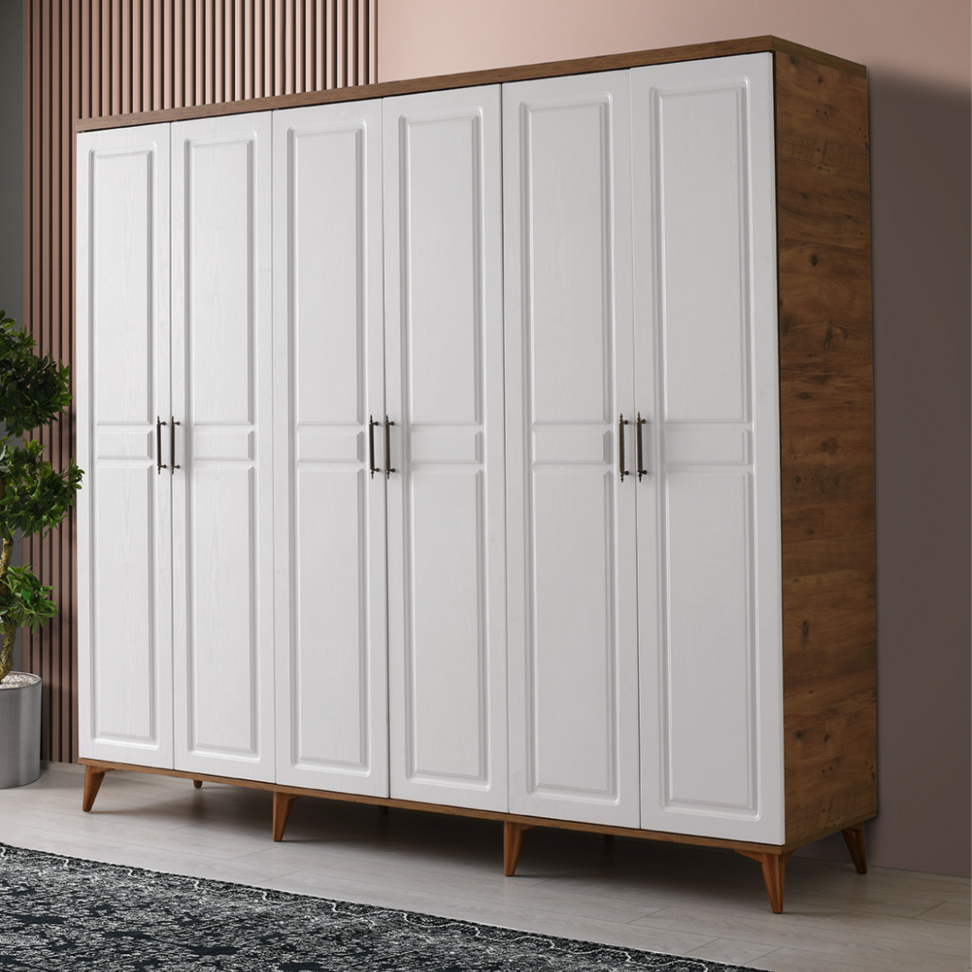 Seronay Lorin 6 Kapaklı Atlantik Çam-Beyaz Gardırop, yaşam alanında düzen ve estetiği bir araya getiren fonksiyonel bir gardırop modelidir. Depolama ihtiyacına pratik bir çözüm sunarken modern tasarım dili sayesinde yatak odasına dengeli ve şık bir görünüm kazandırır.