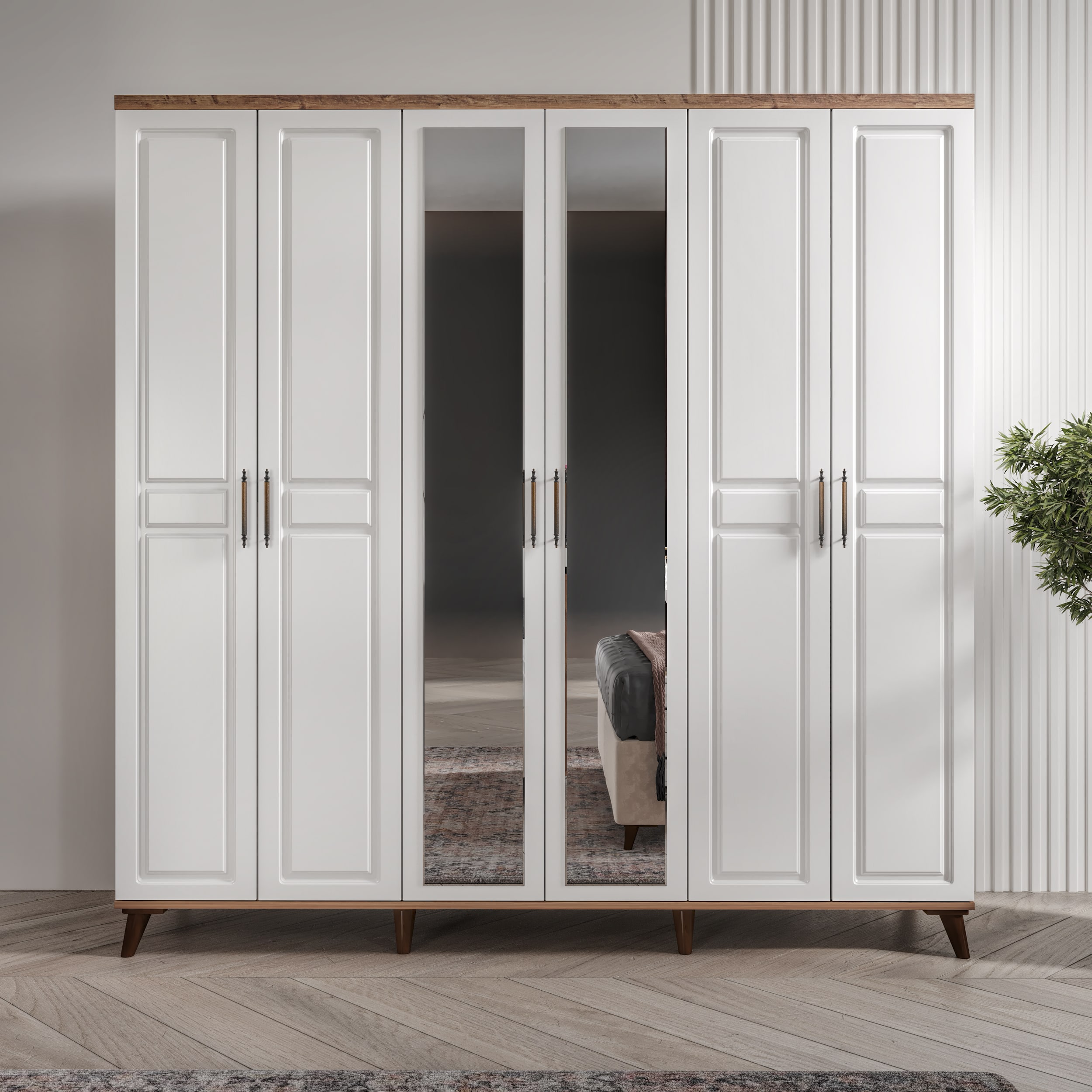 Seronay Lorin 6 Kapaklı Aynalı Atlantik Çam-Beyaz Gardırop, yaşam alanında düzen ve estetiği bir araya getiren fonksiyonel bir gardırop modelidir. Depolama ihtiyacına pratik bir çözüm sunarken modern tasarım dili sayesinde yatak odasına dengeli ve şık bir görünüm kazandırır.