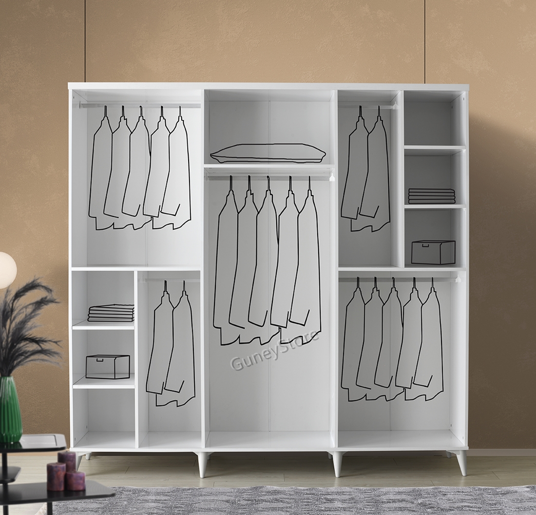 Seronay Lorin 6 Kapaklı Beyaz Gardırop, yaşam alanında düzen ve estetiği bir araya getiren fonksiyonel bir gardırop modelidir. Depolama ihtiyacına pratik bir çözüm sunarken modern tasarım dili sayesinde yatak odasına dengeli ve şık bir görünüm kazandırır.