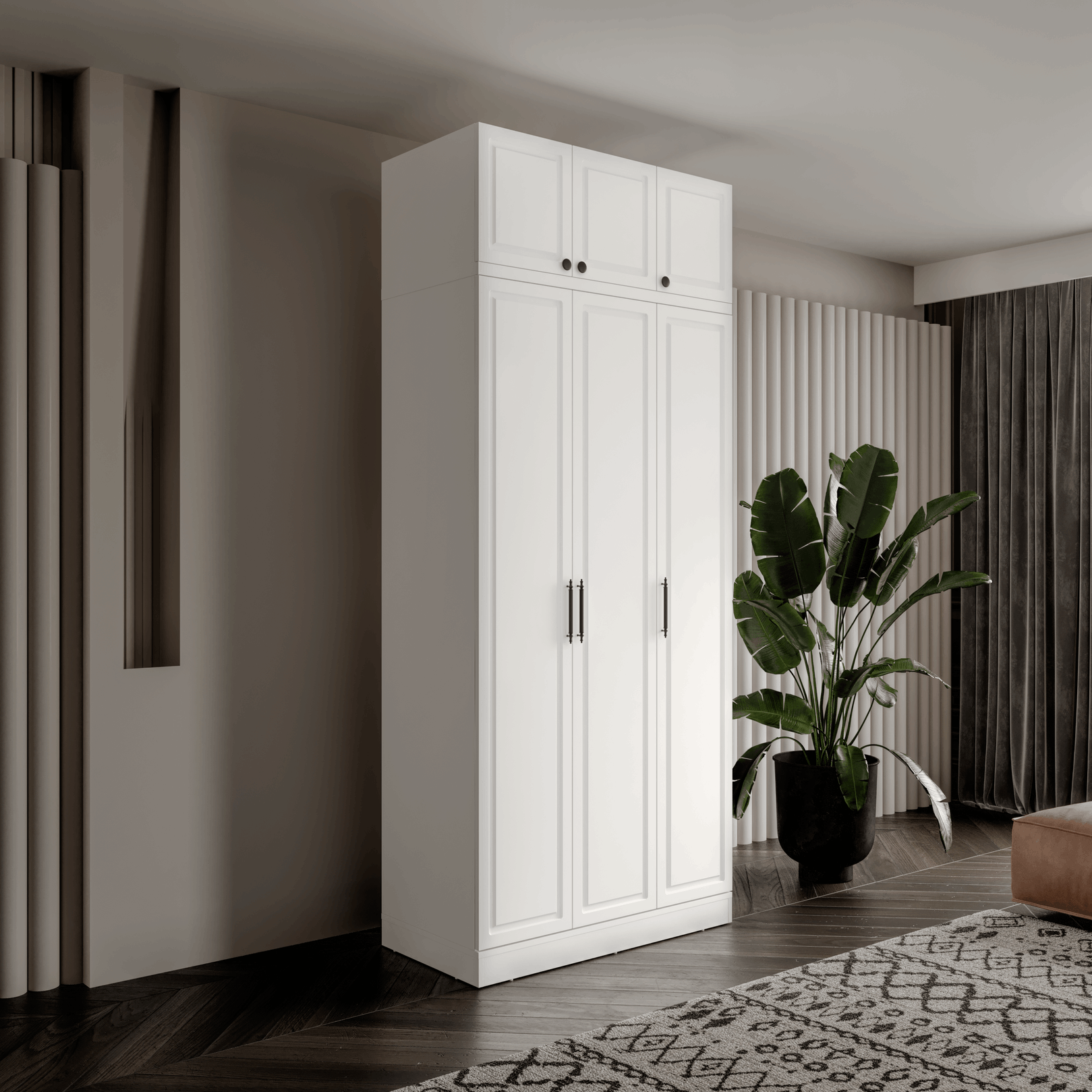 Seronay Milen 3 Kapaklı Yüklüklü Gardırop, yaşam alanında düzen ve estetiği bir araya getiren fonksiyonel bir gardırop modelidir. Depolama ihtiyacına pratik bir çözüm sunarken modern tasarım dili sayesinde yatak odasına dengeli ve şık bir görünüm kazandırır.