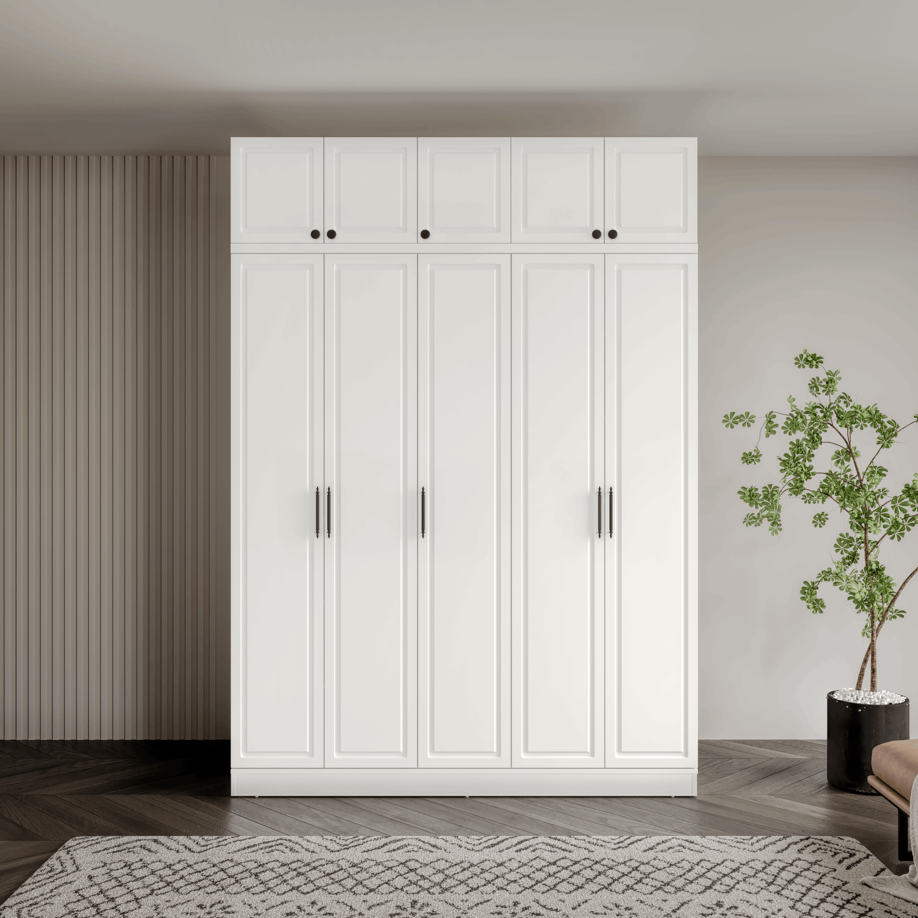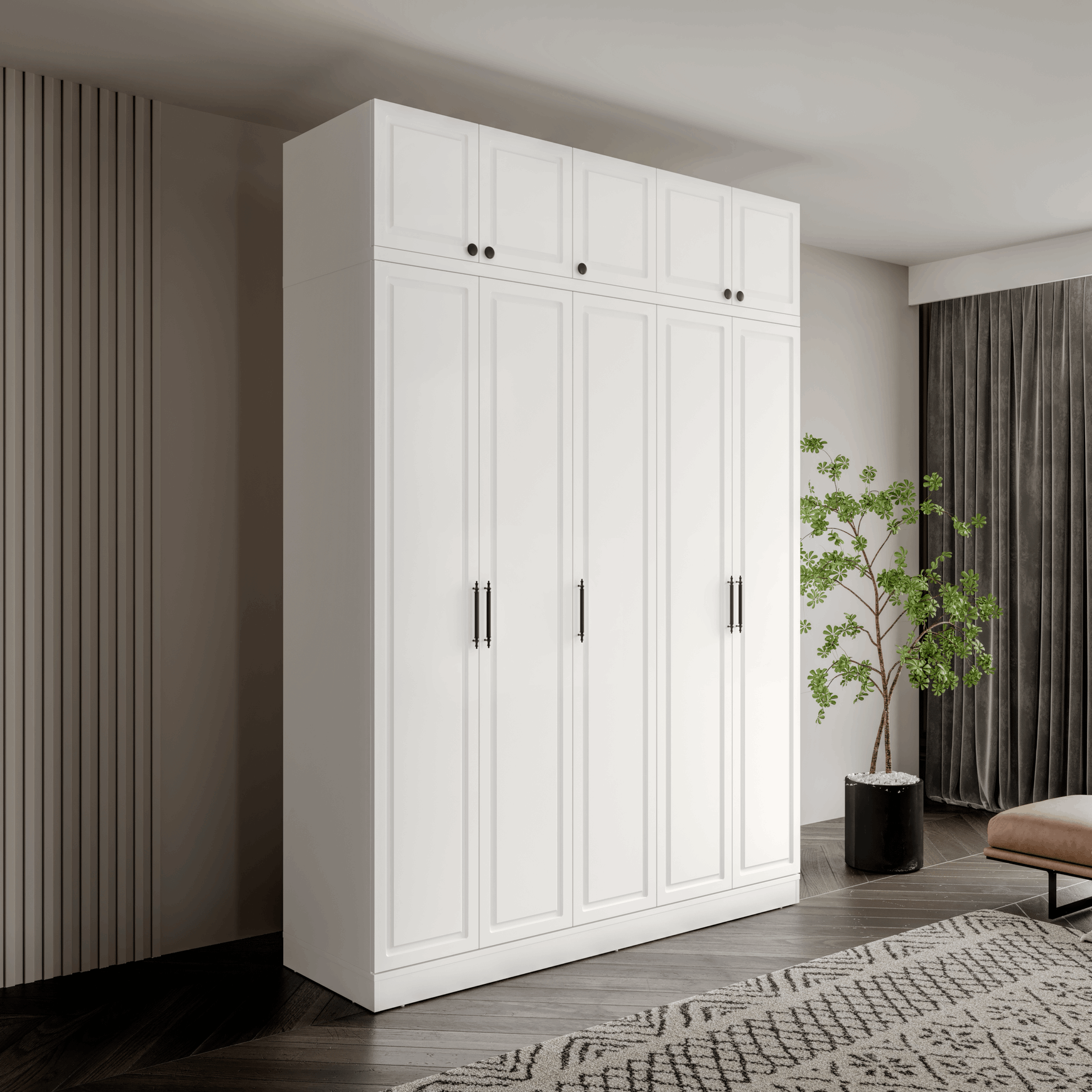 Seronay Milen 5 Kapaklı Yüklüklü Gardırop, yaşam alanında düzen ve estetiği bir araya getiren fonksiyonel bir gardırop modelidir. Depolama ihtiyacına pratik bir çözüm sunarken modern tasarım dili sayesinde yatak odasına dengeli ve şık bir görünüm kazandırır.