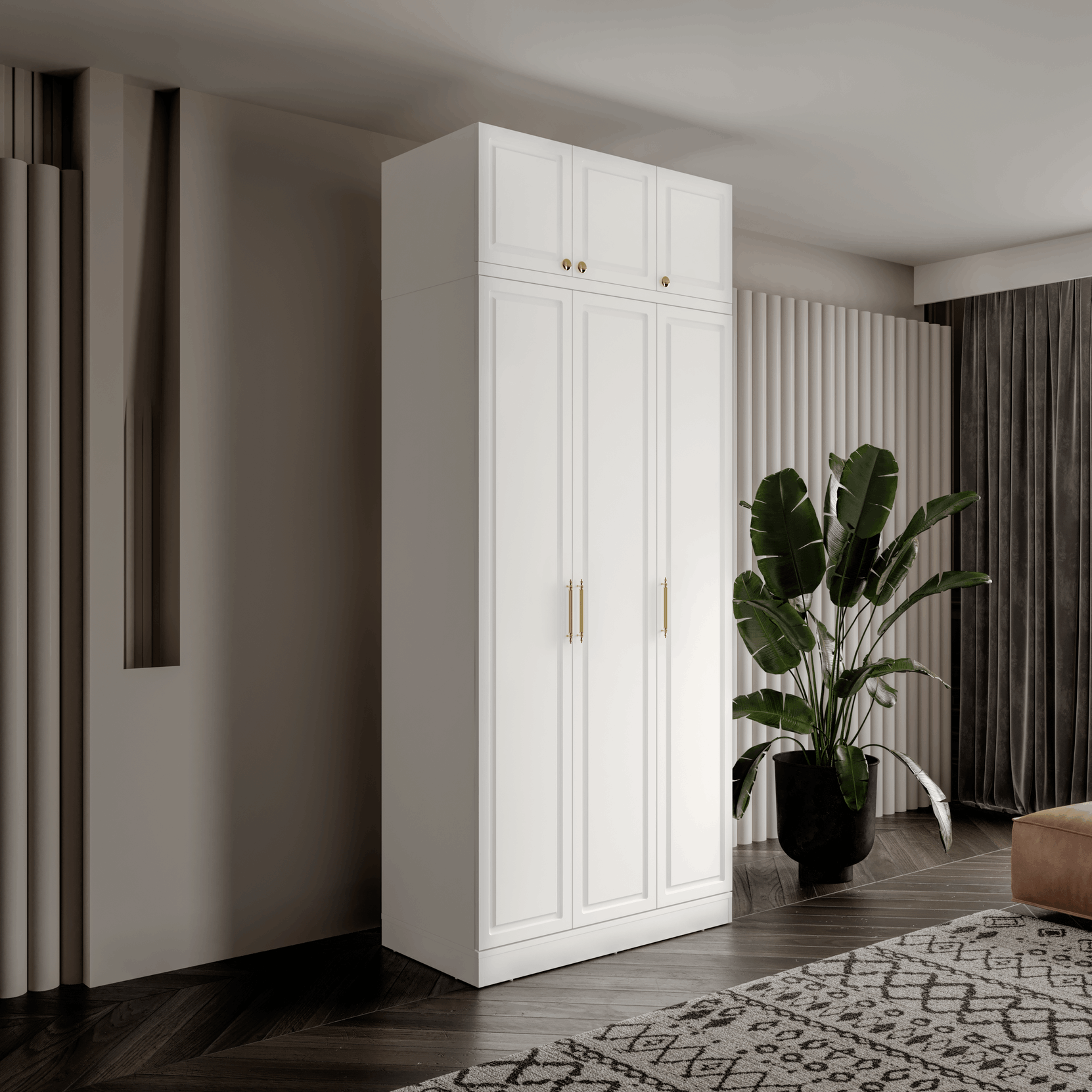 Seronay Milen Gold 3 Kapaklı Yüklüklü Gardırop, yaşam alanında düzen ve estetiği bir araya getiren fonksiyonel bir gardırop modelidir. Depolama ihtiyacına pratik bir çözüm sunarken modern tasarım dili sayesinde yatak odasına dengeli ve şık bir görünüm kazandırır.