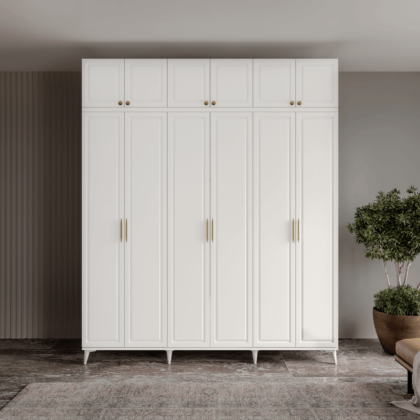 Seronay Milen Gold 6 Kapaklı Ayaklı Yüklüklü Gardırop, yaşam alanında düzen ve estetiği bir araya getiren fonksiyonel bir gardırop modelidir. Depolama ihtiyacına pratik bir çözüm sunarken modern tasarım dili sayesinde yatak odasına dengeli ve şık bir görünüm kazandırır.