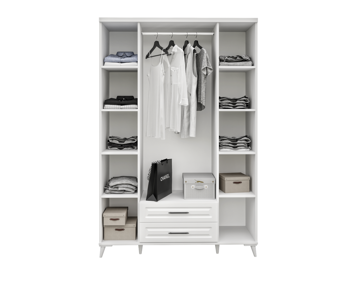 - Gövde ve kapaklar tamamen beyaz MDF'dir