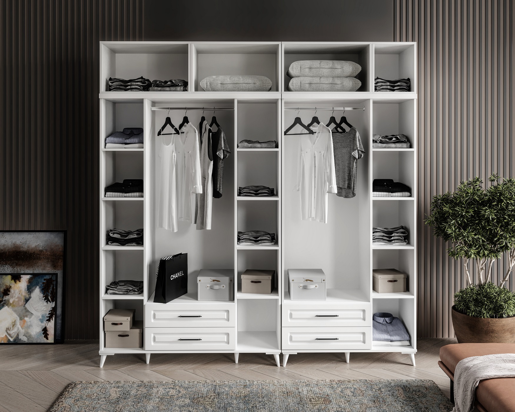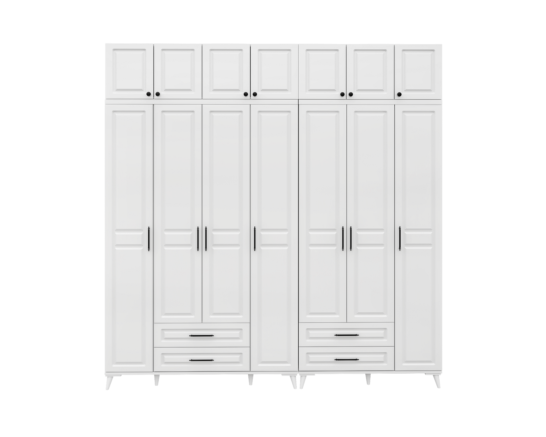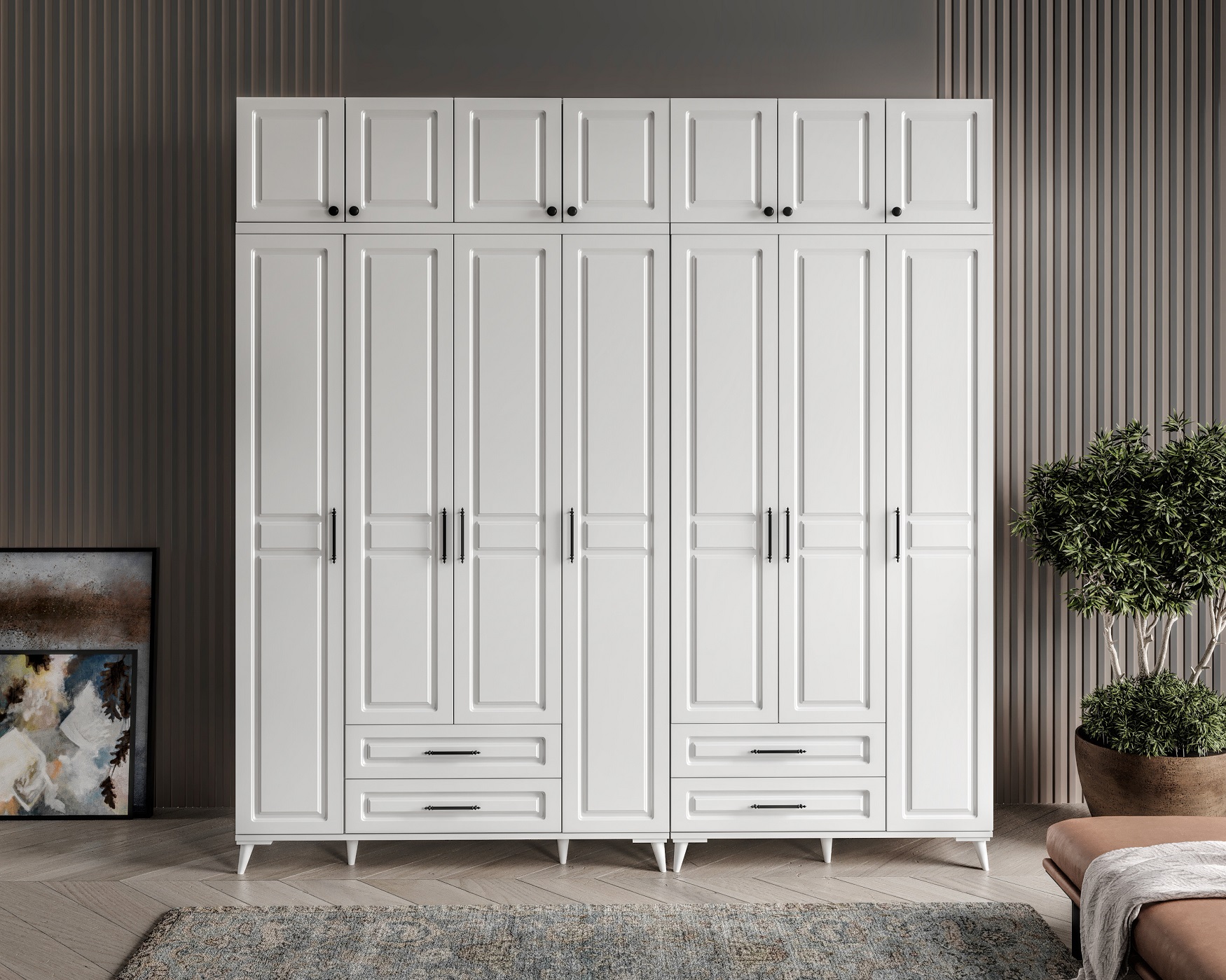 Seronay Mirea 7 Kapaklı Çekmeceli Yüklüklü Beyaz Gardırop, yaşam alanında düzen ve estetiği bir araya getiren fonksiyonel bir gardırop modelidir. Depolama ihtiyacına pratik bir çözüm sunarken modern tasarım dili sayesinde yatak odasına dengeli ve şık bir görünüm kazandırır.