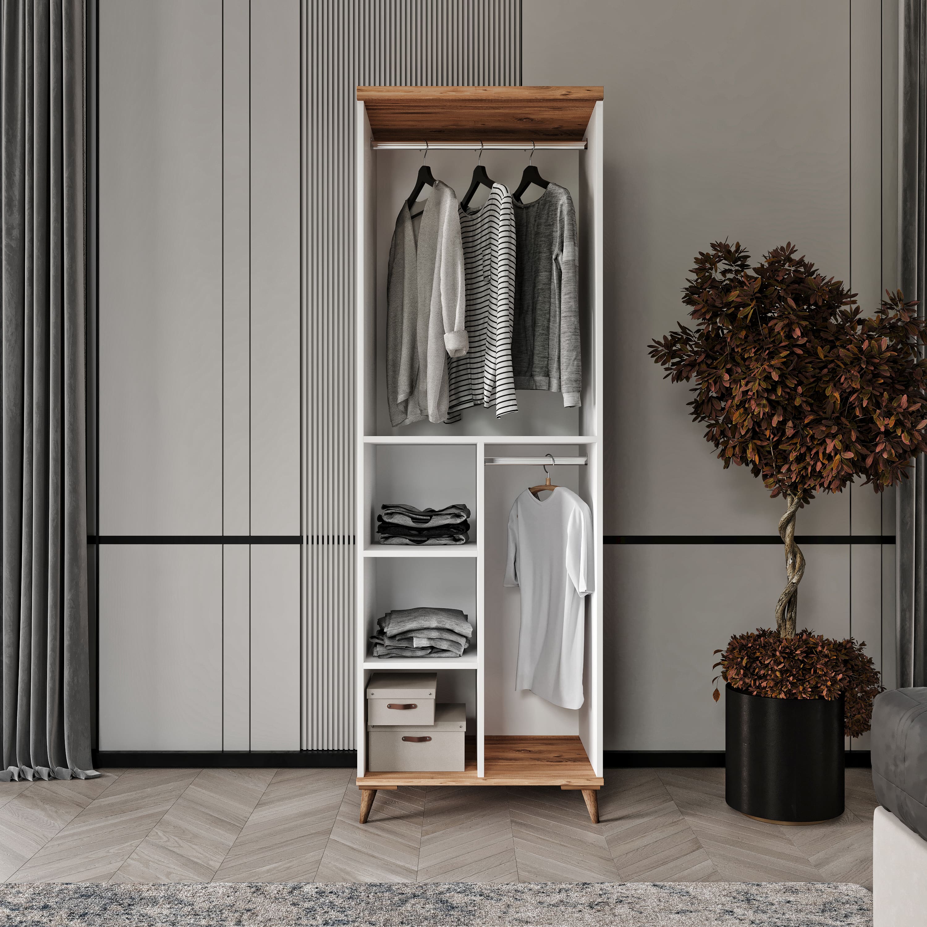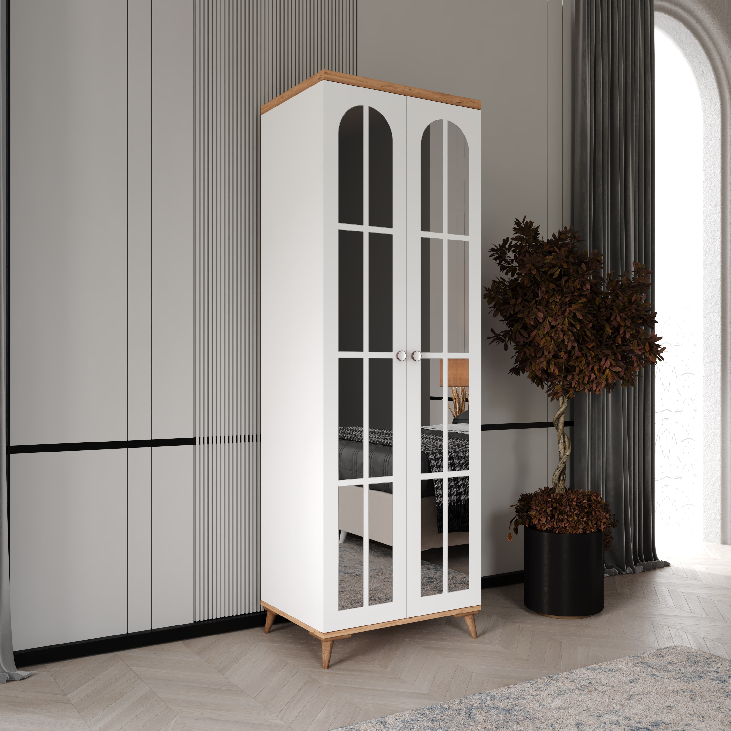 Seronay Mora 2 Kapaklı Aynalı Gardırop, yaşam alanında düzen ve estetiği bir araya getiren fonksiyonel bir gardırop modelidir. Depolama ihtiyacına pratik bir çözüm sunarken modern tasarım dili sayesinde yatak odasına dengeli ve şık bir görünüm kazandırır.