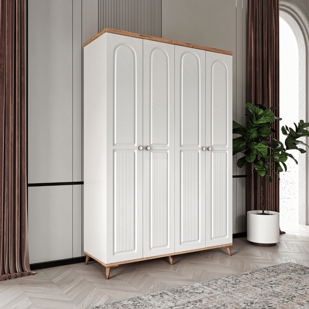 Seronay Mora 4 Kapaklı Gardırop, yaşam alanında düzen ve estetiği bir araya getiren fonksiyonel bir gardırop modelidir. Depolama ihtiyacına pratik bir çözüm sunarken modern tasarım dili sayesinde yatak odasına dengeli ve şık bir görünüm kazandırır.