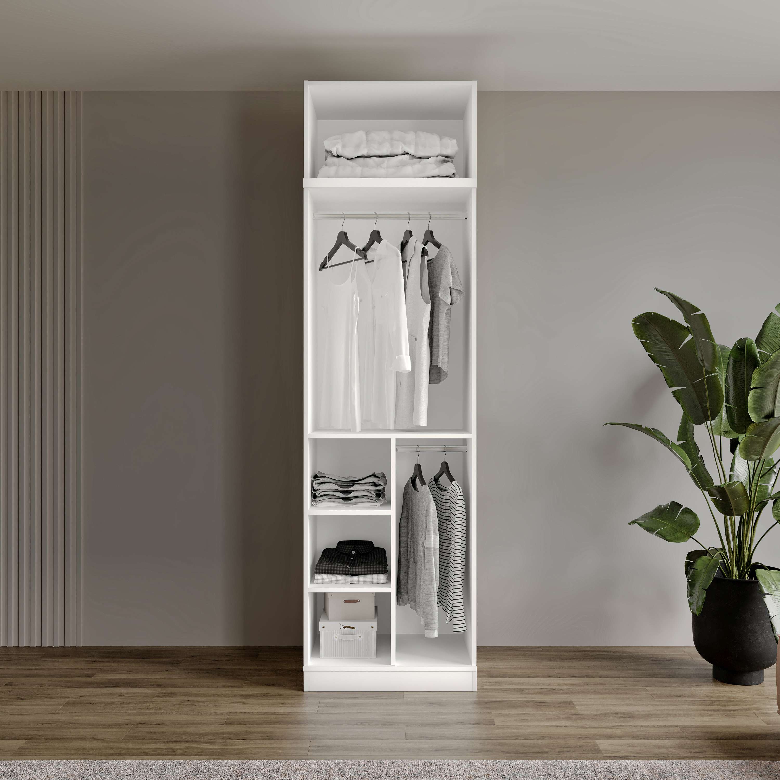 - 2 kapaklı kompakt gardırop yapısı