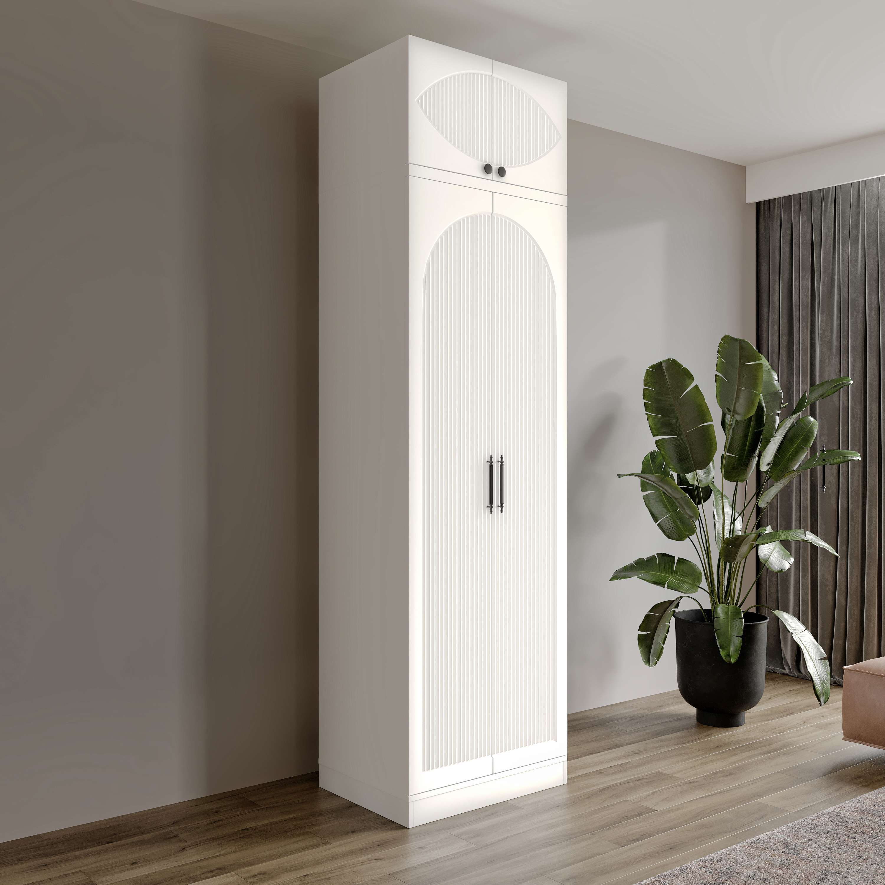 Seronay Neris 2 Kapaklı Yüklüklü Beyaz Gardırop, yaşam alanında düzen ve estetiği bir araya getiren fonksiyonel bir gardırop modelidir. Depolama ihtiyacına pratik bir çözüm sunarken modern tasarım dili sayesinde yatak odasına dengeli ve şık bir görünüm kazandırır.