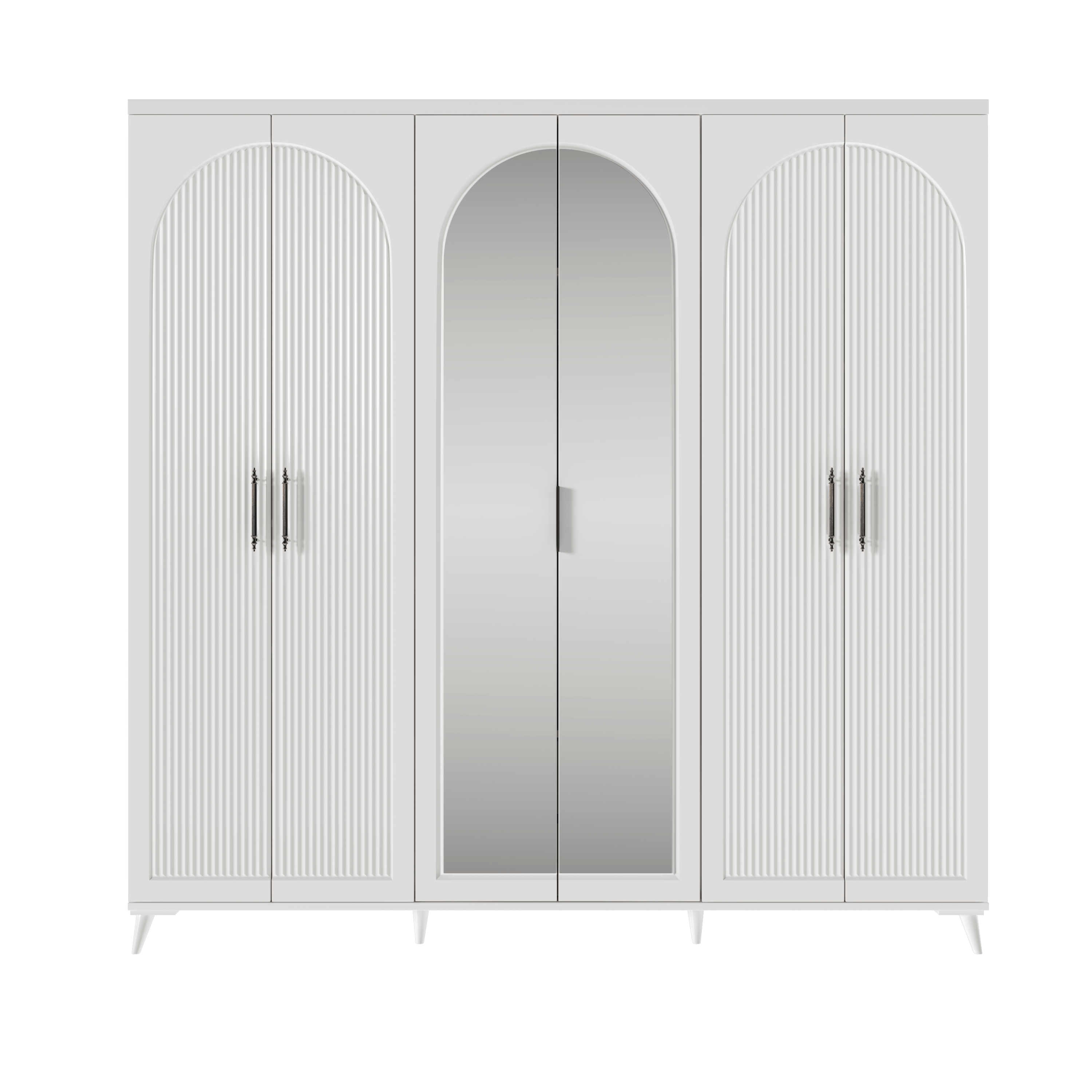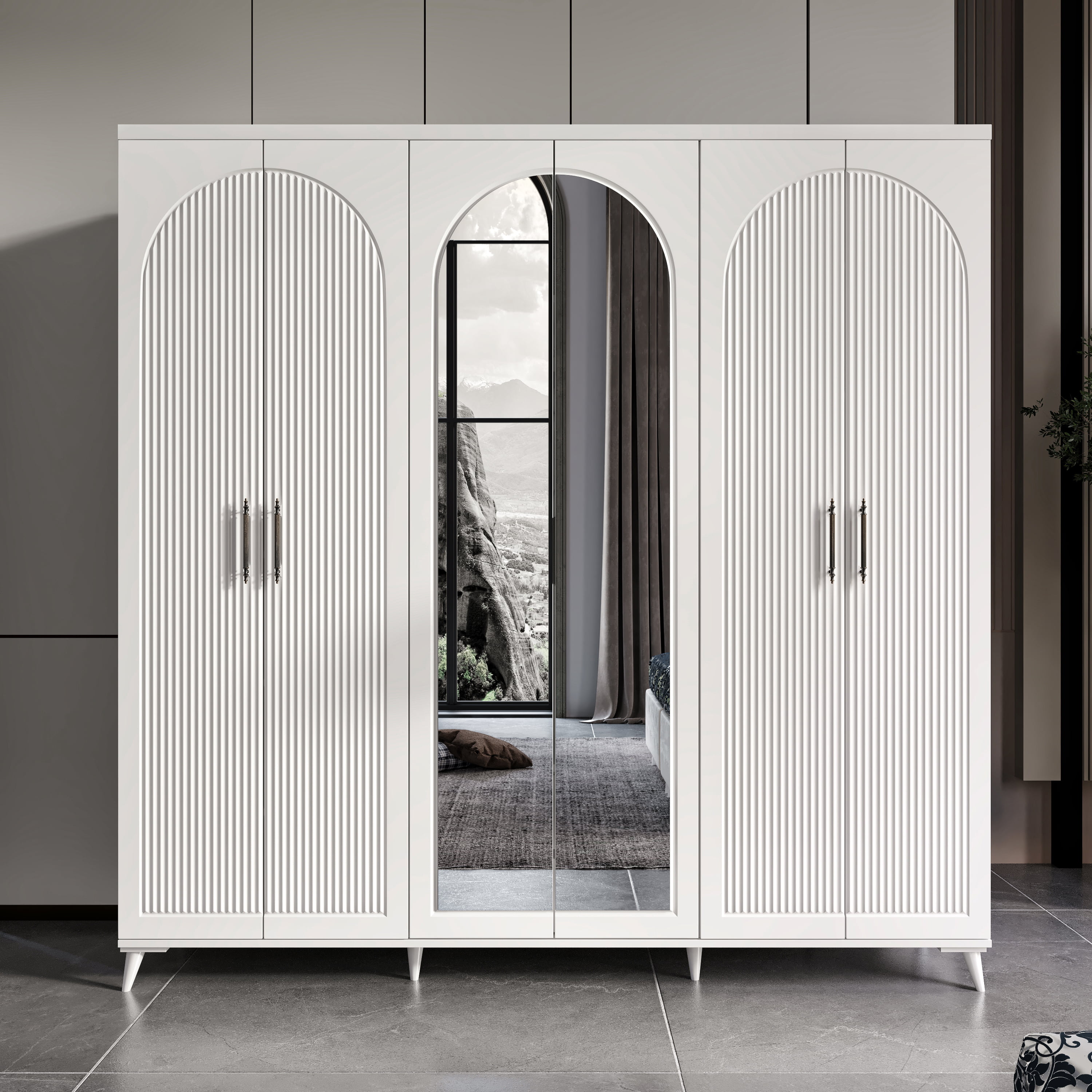 Seronay Neris 6 Kapaklı Aynalı Beyaz Gardırop, yaşam alanında düzen ve estetiği bir araya getiren fonksiyonel bir gardırop modelidir. Depolama ihtiyacına pratik bir çözüm sunarken modern tasarım dili sayesinde yatak odasına dengeli ve şık bir görünüm kazandırır.