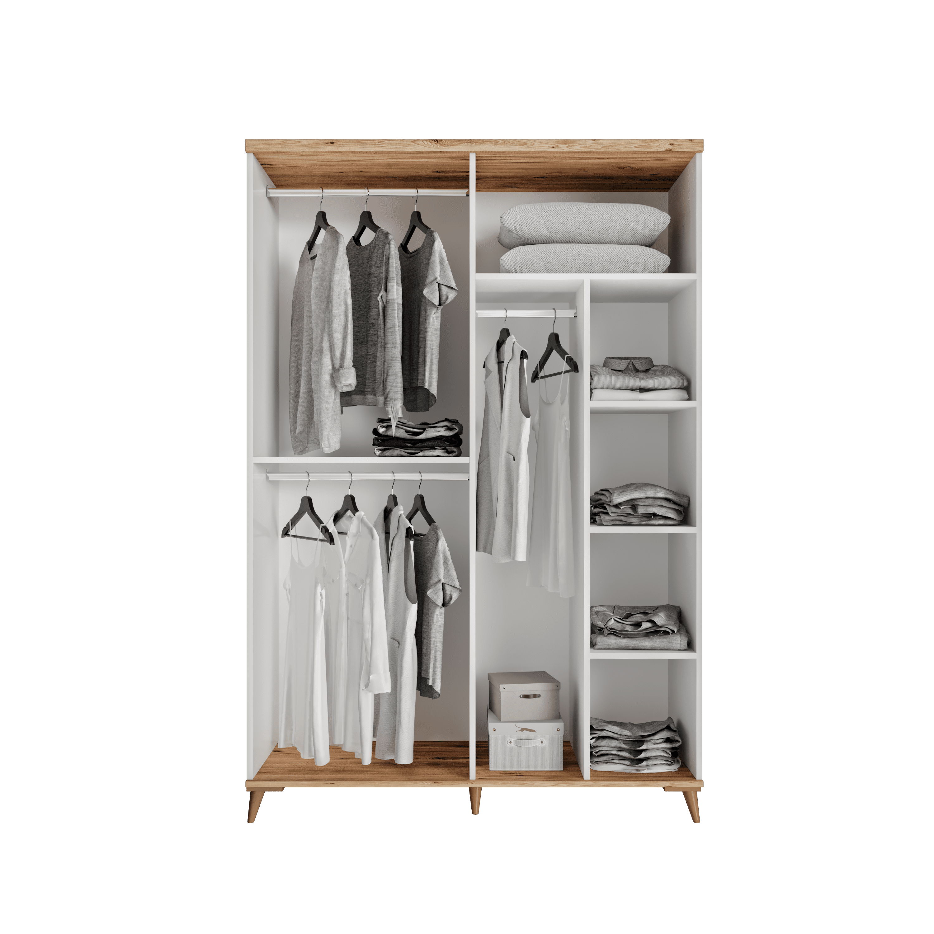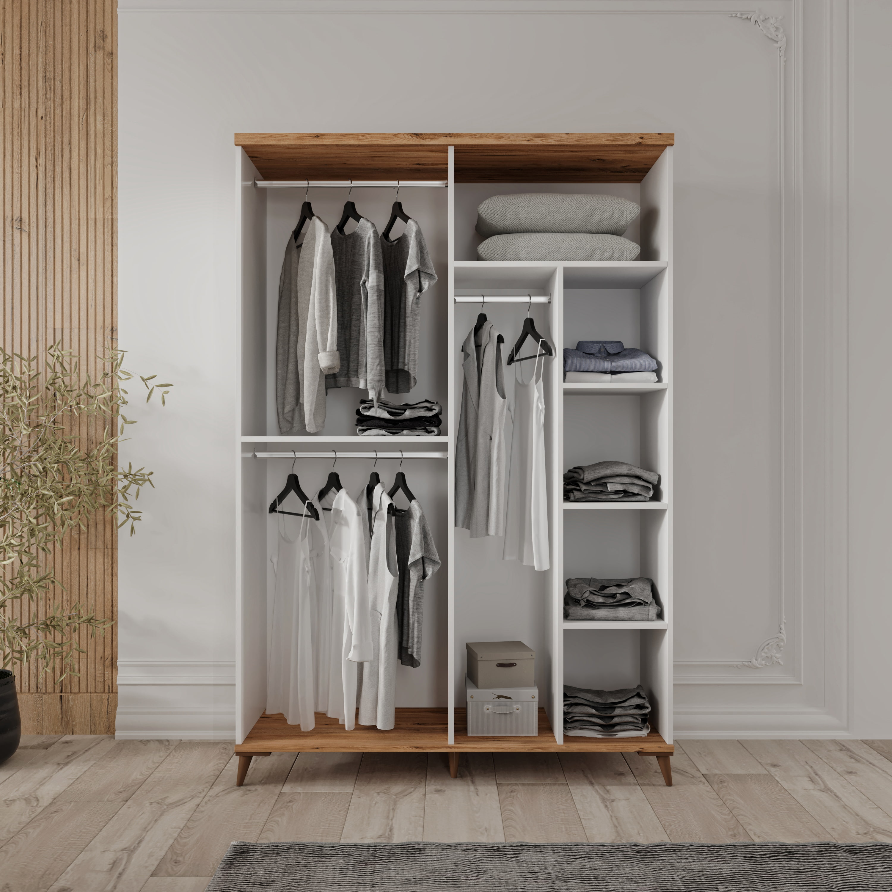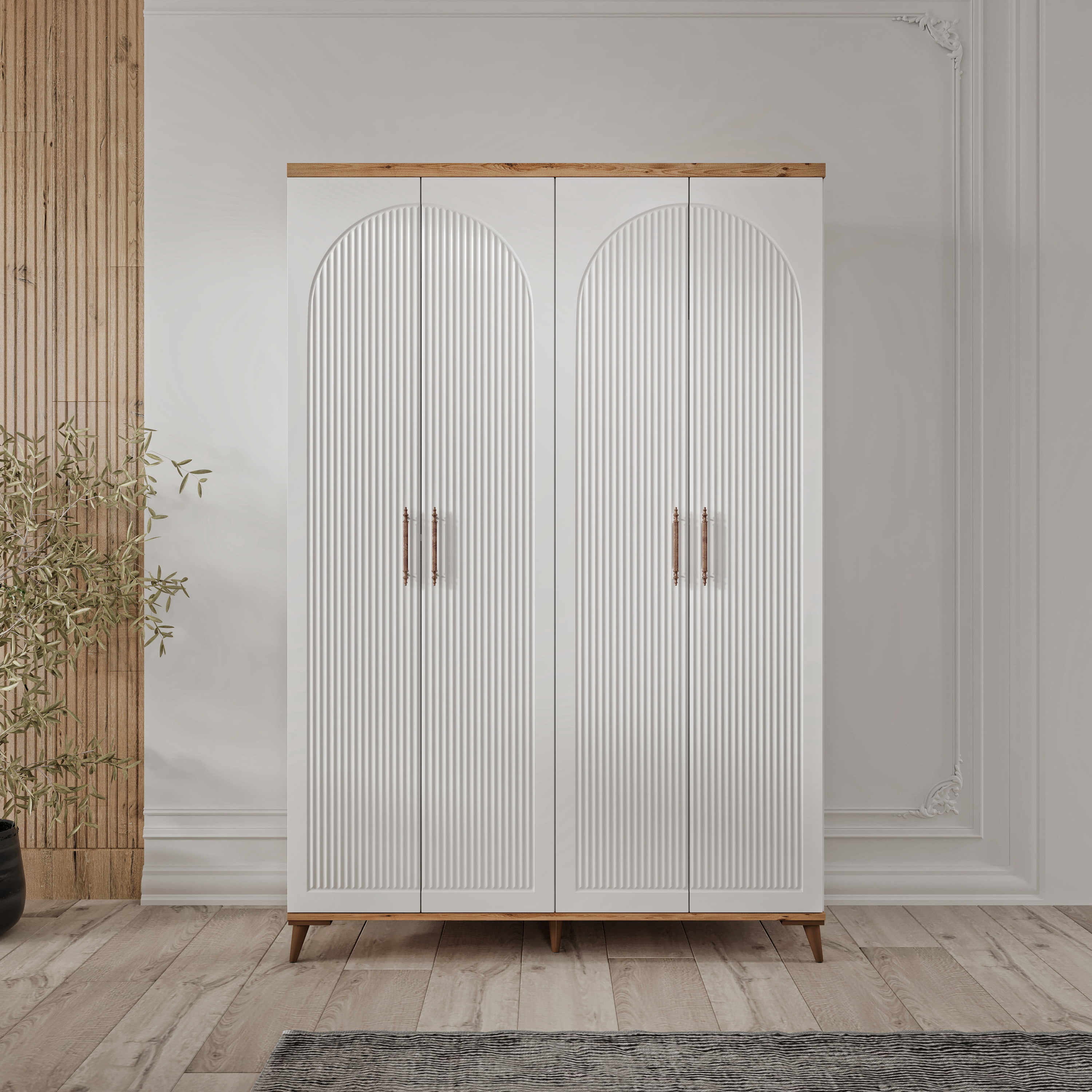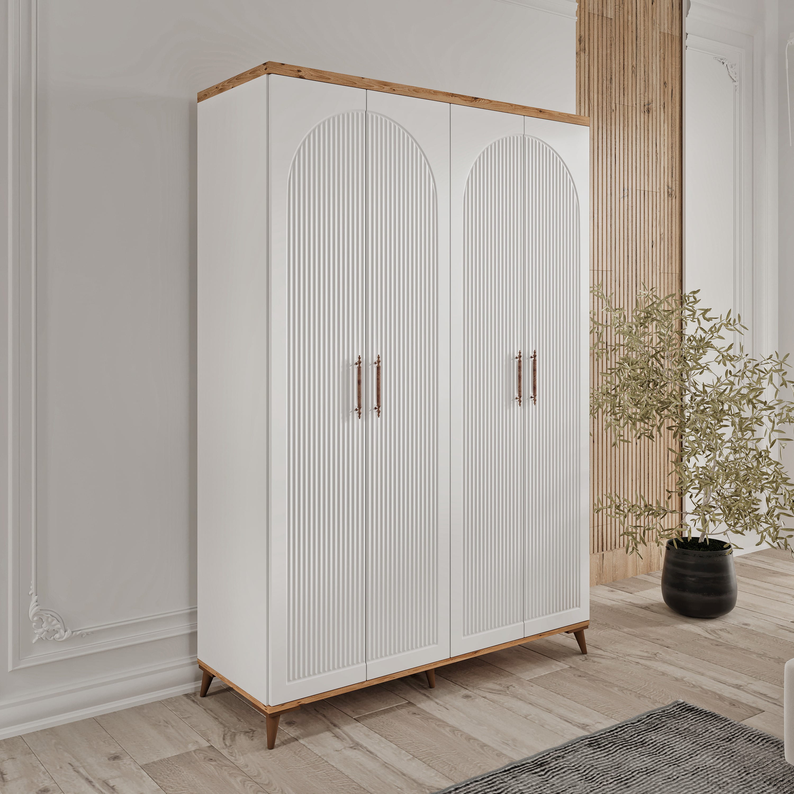 Seronay Nevora 4 Kapaklı Gardırop, yaşam alanında düzen ve estetiği bir araya getiren fonksiyonel bir gardırop modelidir. Depolama ihtiyacına pratik bir çözüm sunarken modern tasarım dili sayesinde yatak odasına dengeli ve şık bir görünüm kazandırır.