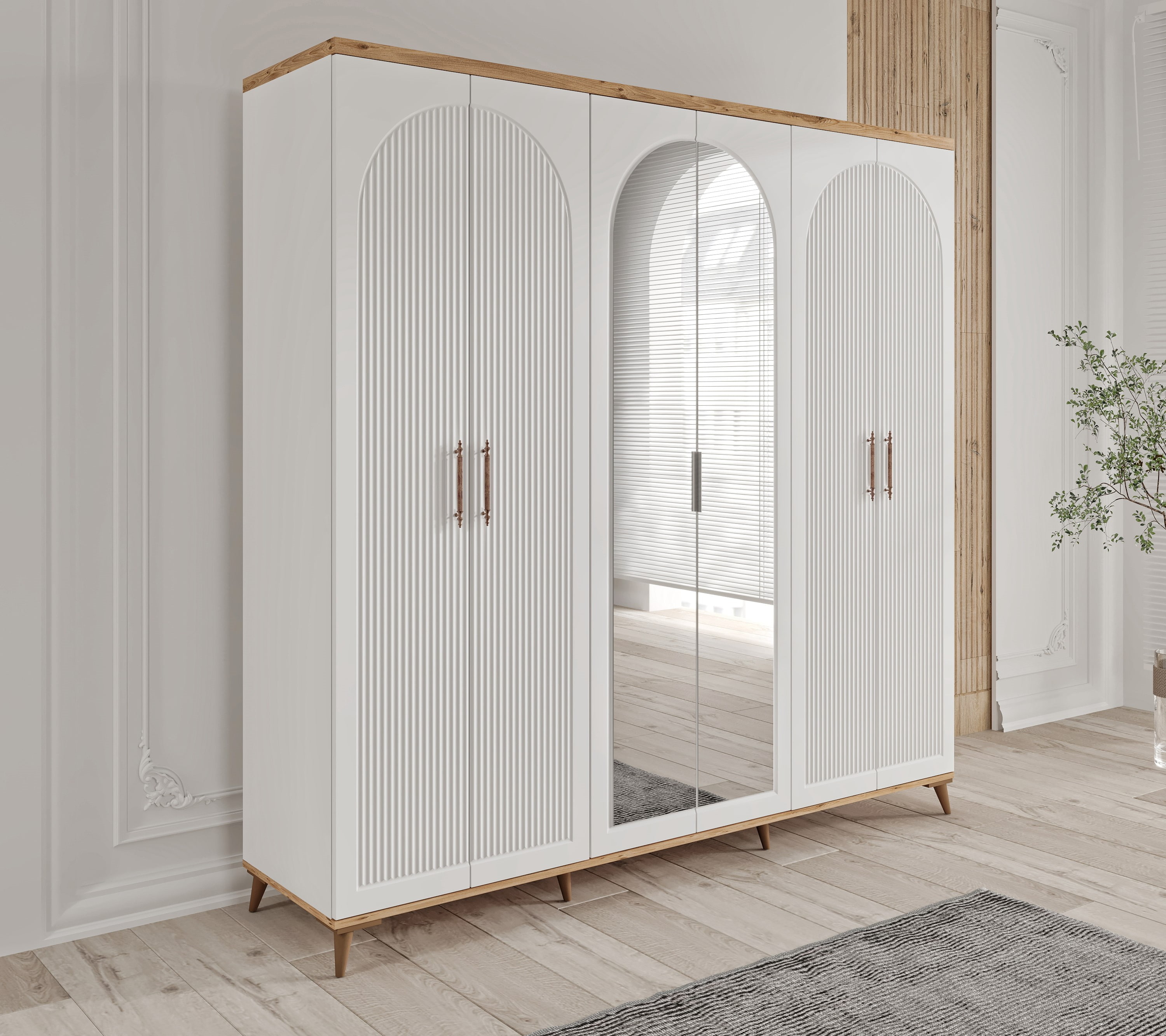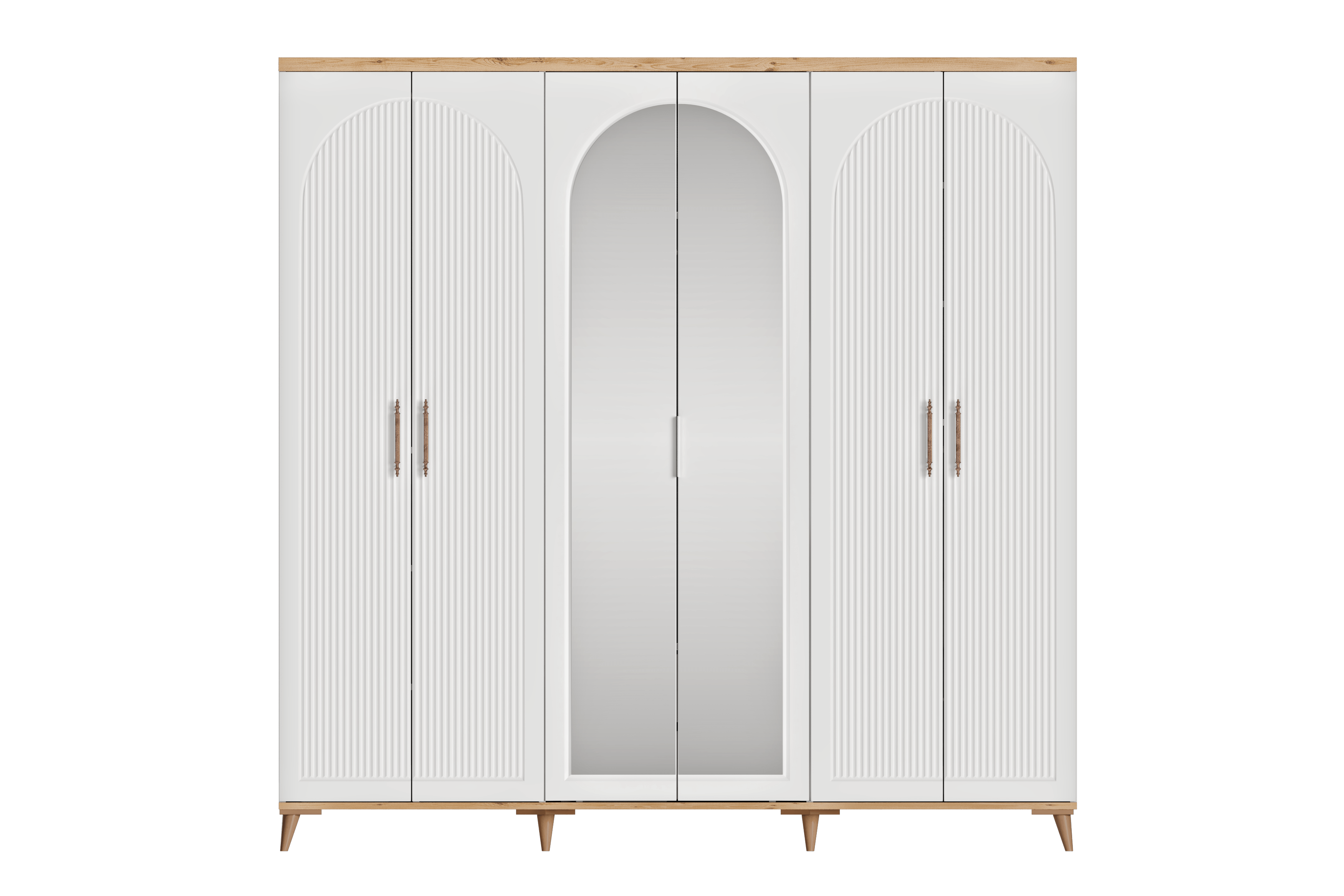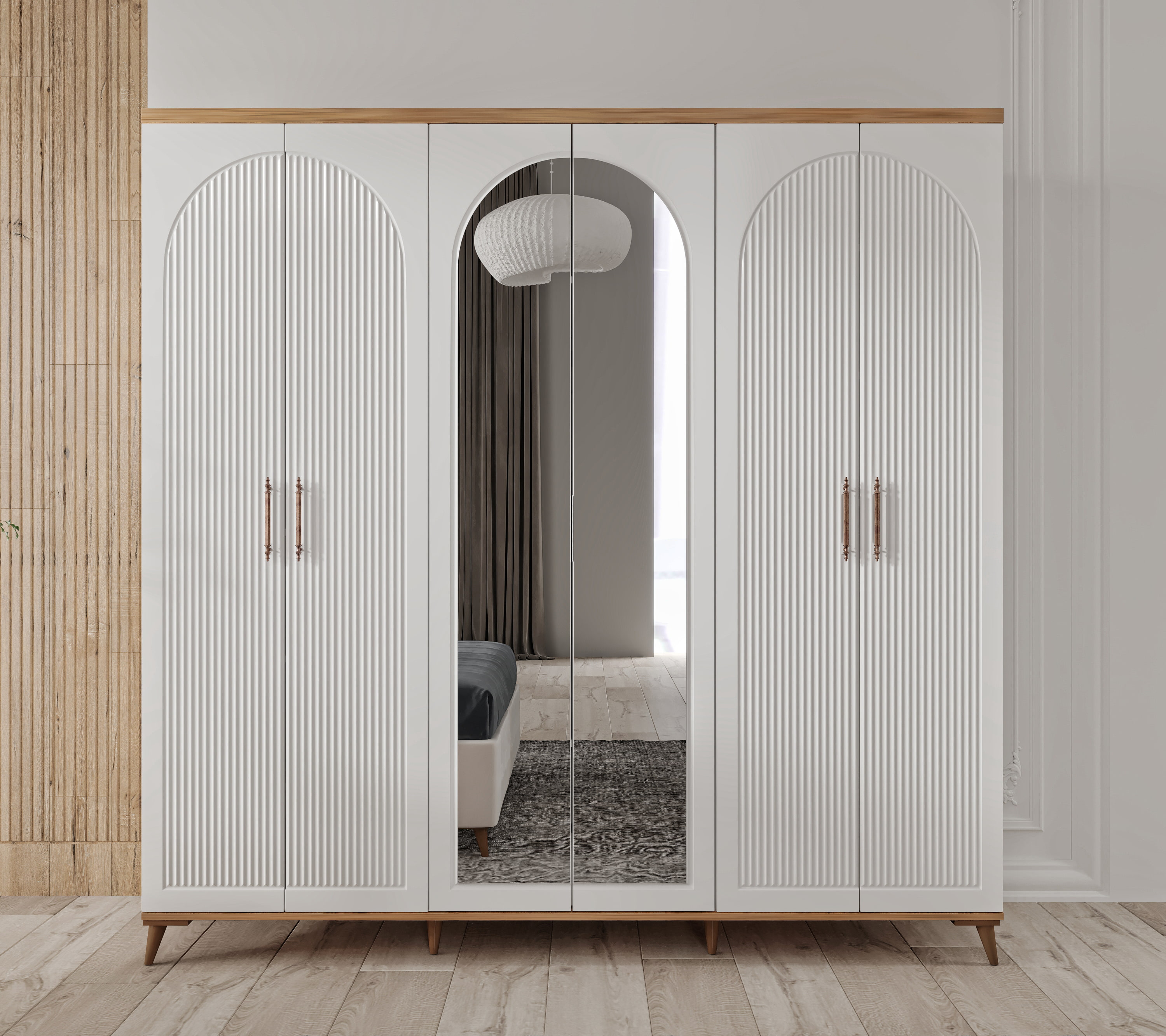 Seronay Nevora 6 Kapaklı Aynalı Gardırop, yaşam alanında düzen ve estetiği bir araya getiren fonksiyonel bir gardırop modelidir. Depolama ihtiyacına pratik bir çözüm sunarken modern tasarım dili sayesinde yatak odasına dengeli ve şık bir görünüm kazandırır.