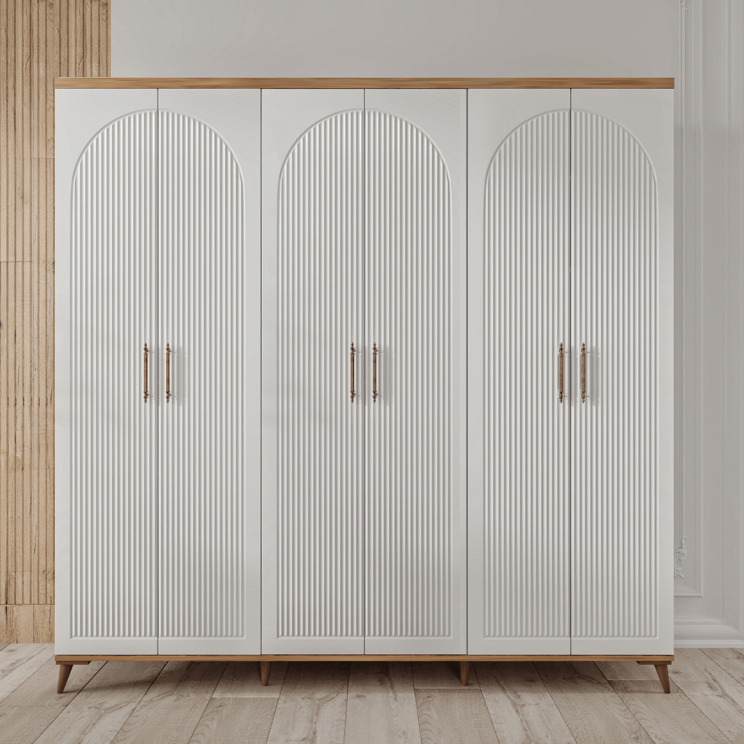 Seronay Nevora 6 Kapaklı Gardırop, yaşam alanında düzen ve estetiği bir araya getiren fonksiyonel bir gardırop modelidir. Depolama ihtiyacına pratik bir çözüm sunarken modern tasarım dili sayesinde yatak odasına dengeli ve şık bir görünüm kazandırır.