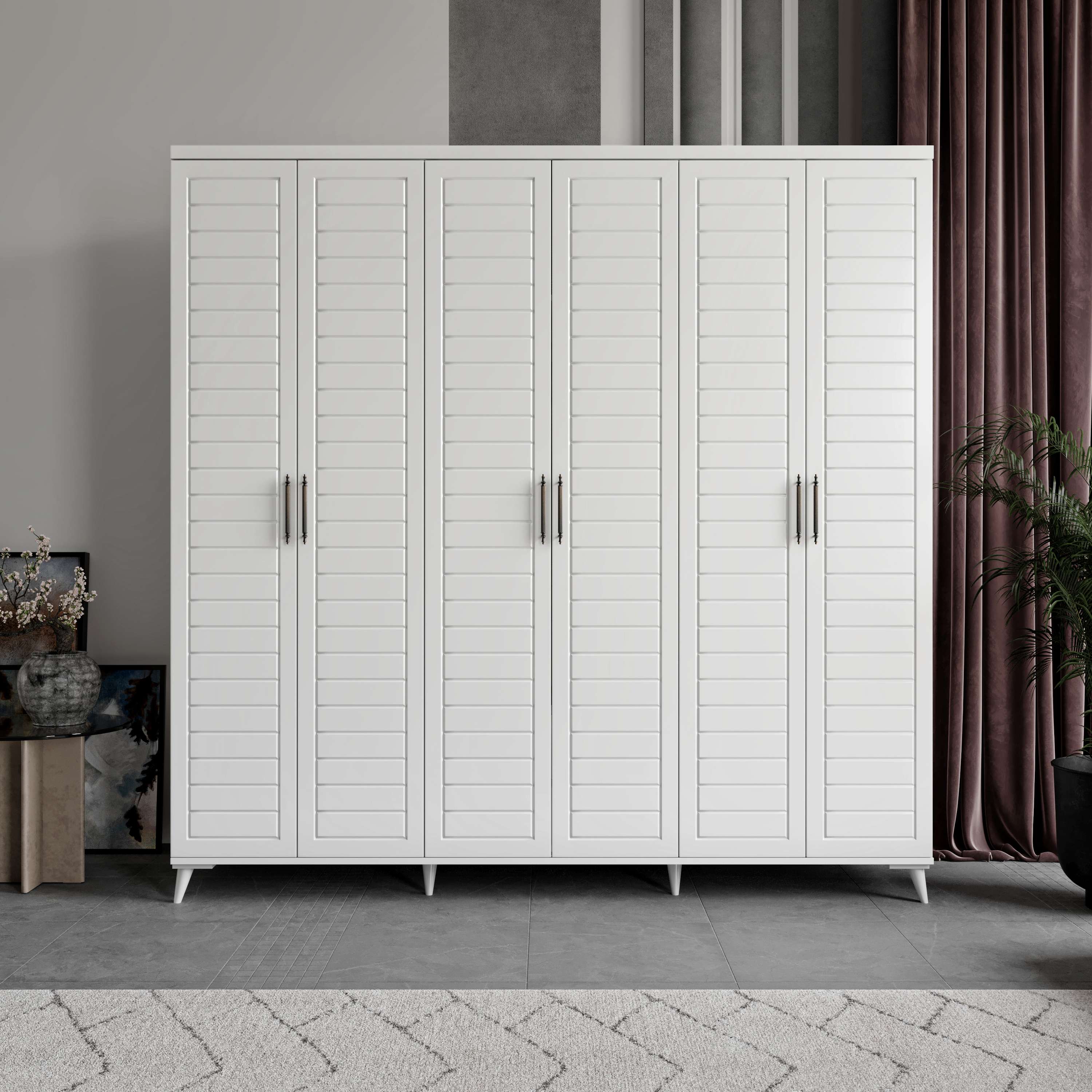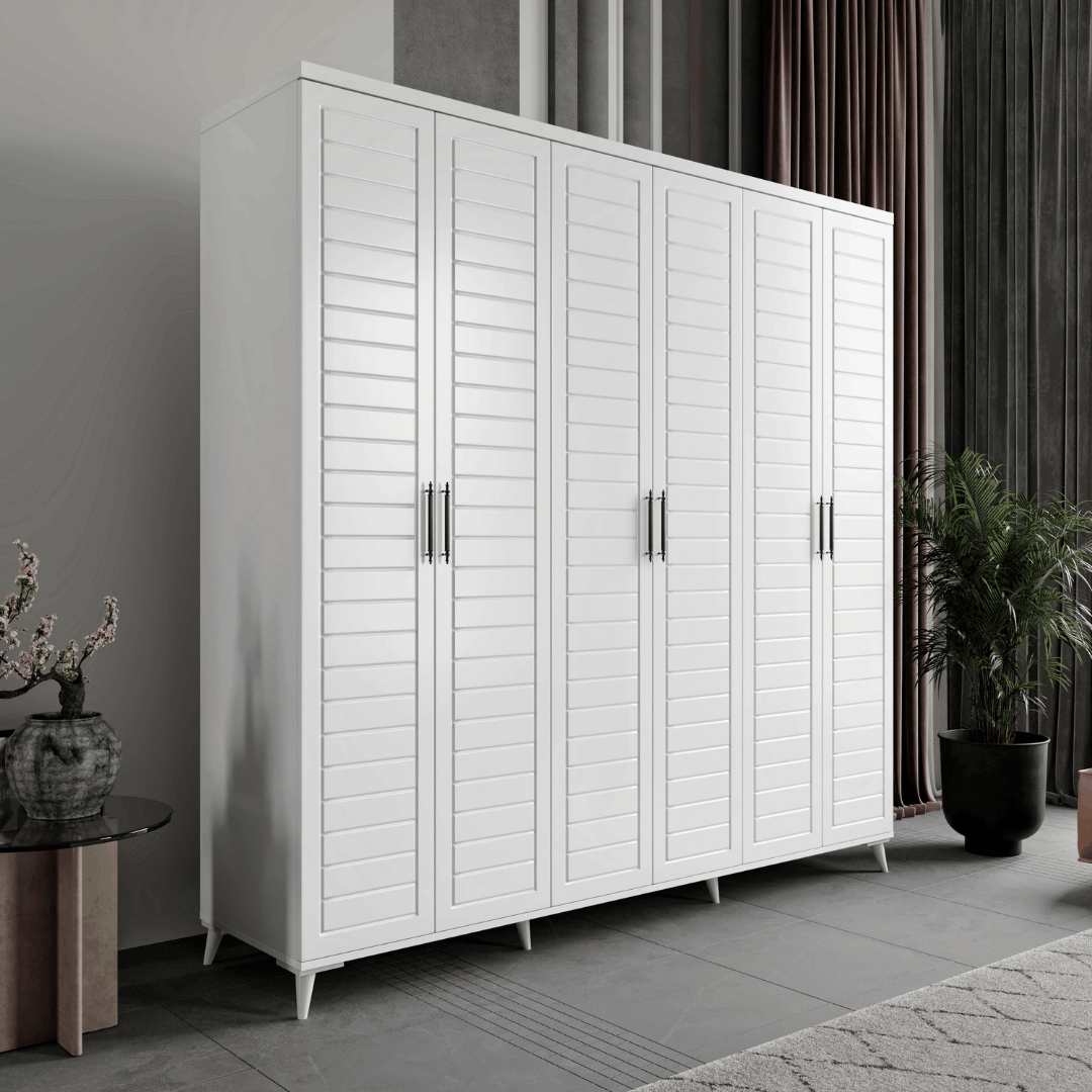Seronay Rodosa 6 Kapaklı Beyaz Gardırop, yaşam alanında düzen ve estetiği bir araya getiren fonksiyonel bir gardırop modelidir. Depolama ihtiyacına pratik bir çözüm sunarken modern tasarım dili sayesinde yatak odasına dengeli ve şık bir görünüm kazandırır.