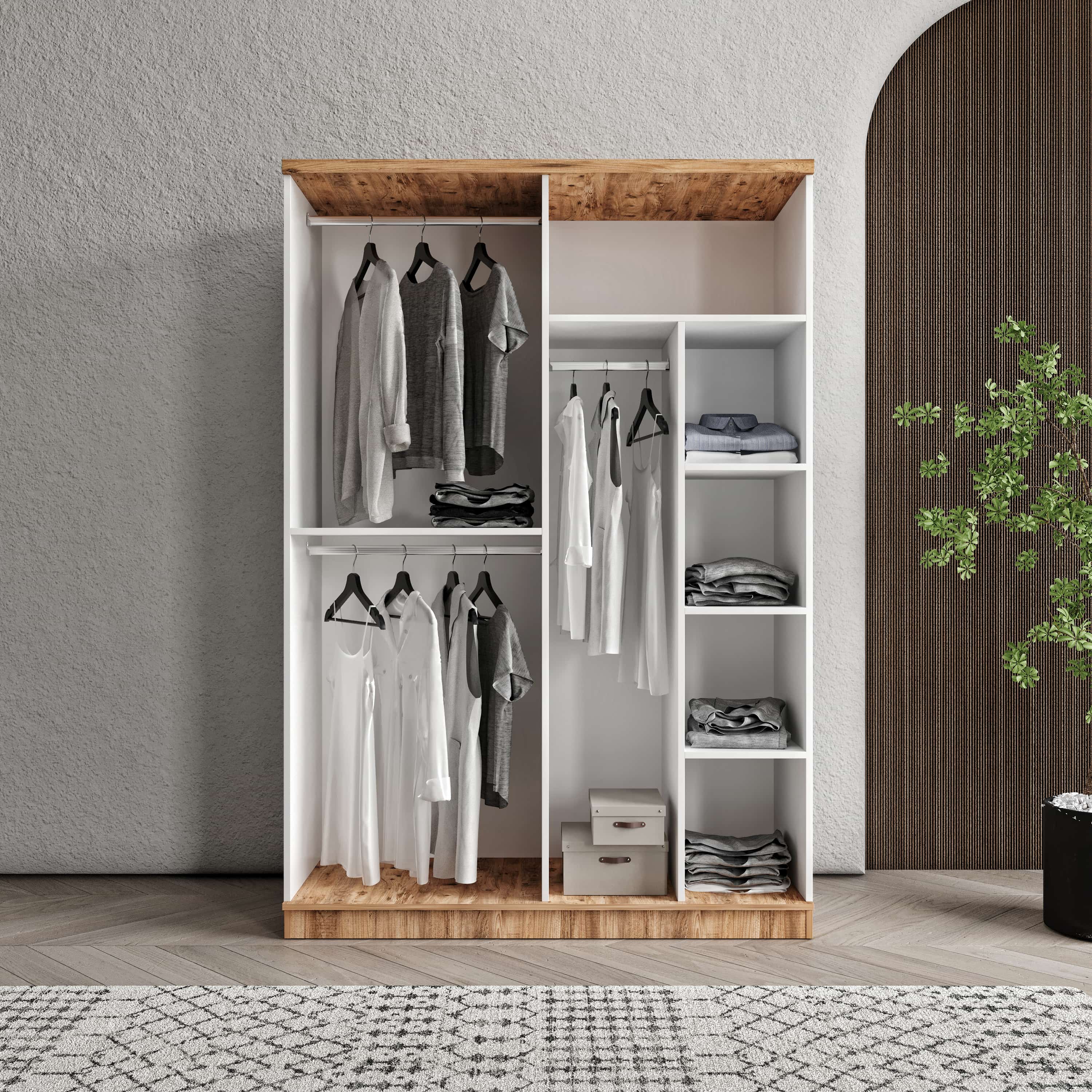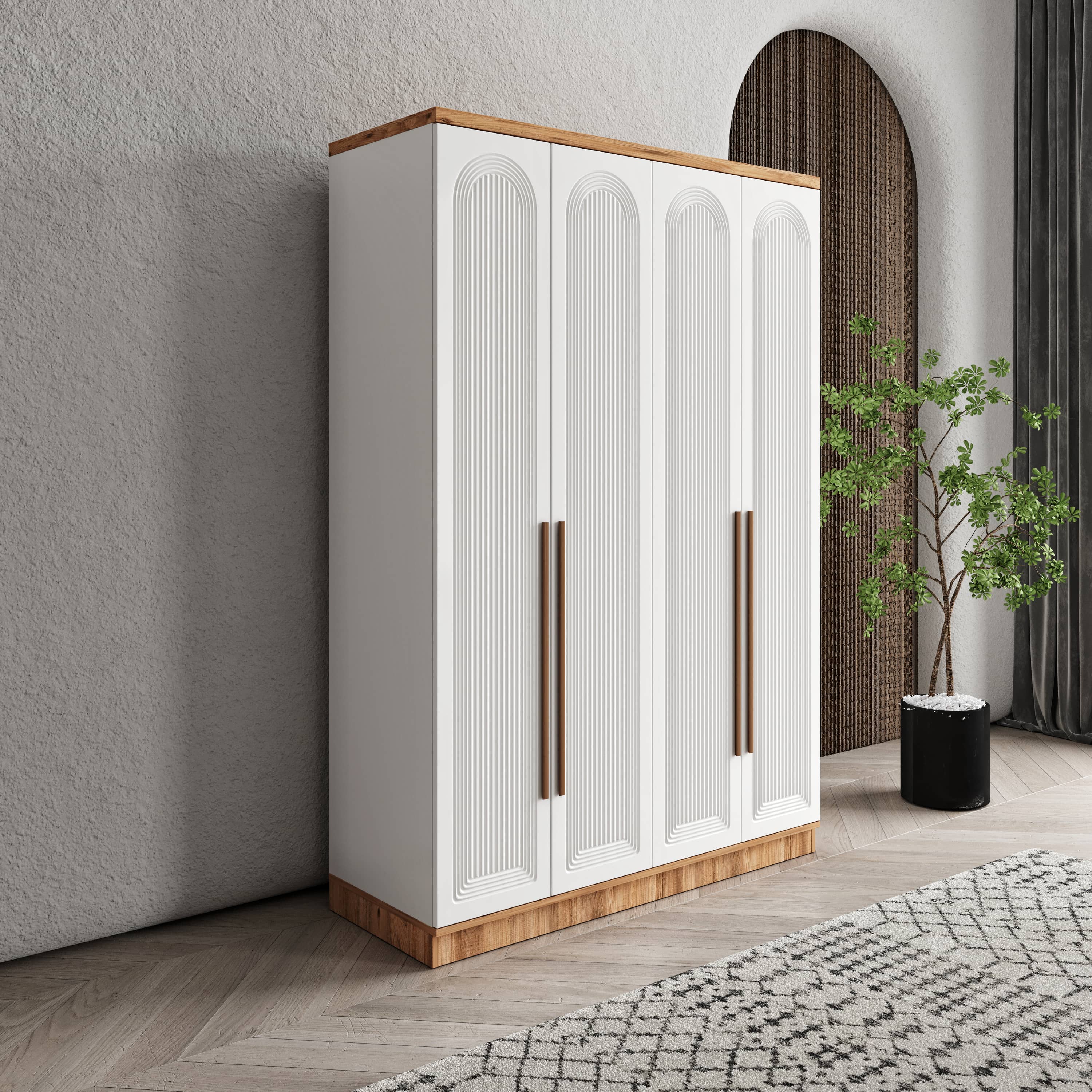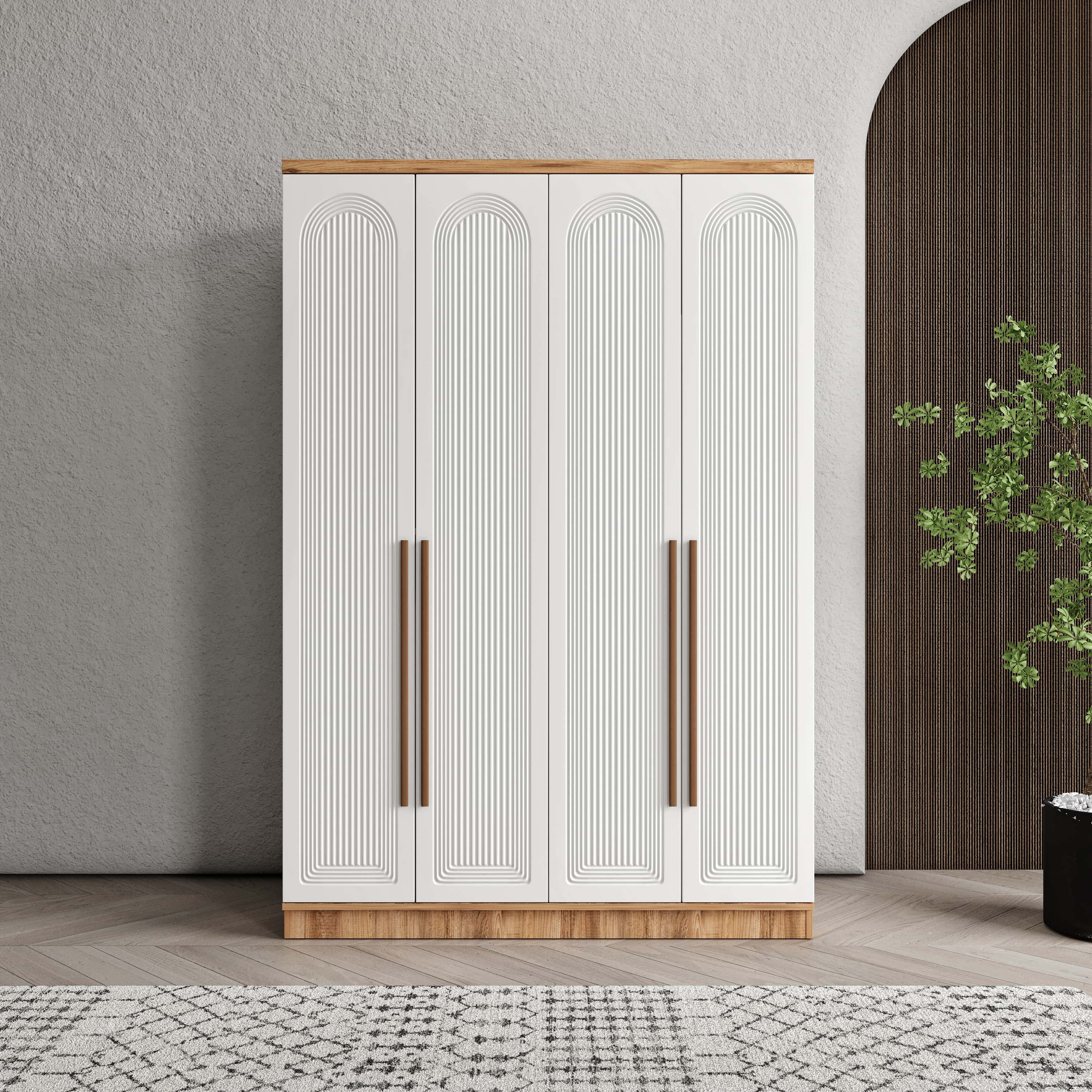 Seronay Rosela 4 Kapaklı Gardırop, yaşam alanında düzen ve estetiği bir araya getiren fonksiyonel bir gardırop modelidir. Depolama ihtiyacına pratik bir çözüm sunarken modern tasarım dili sayesinde yatak odasına dengeli ve şık bir görünüm kazandırır.