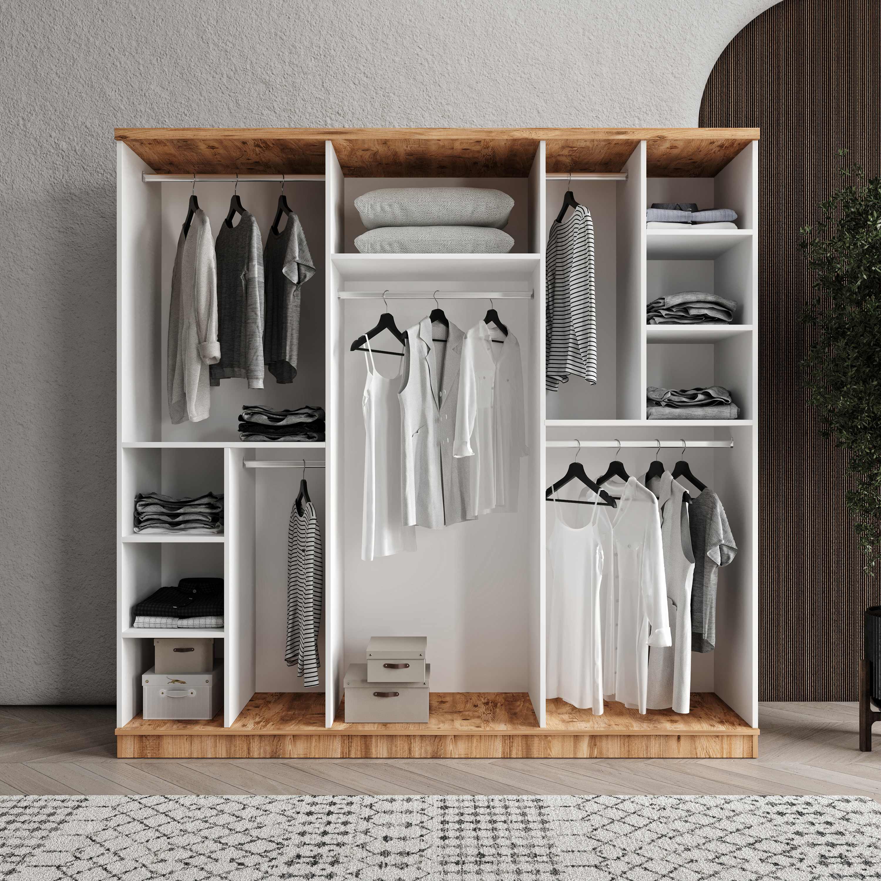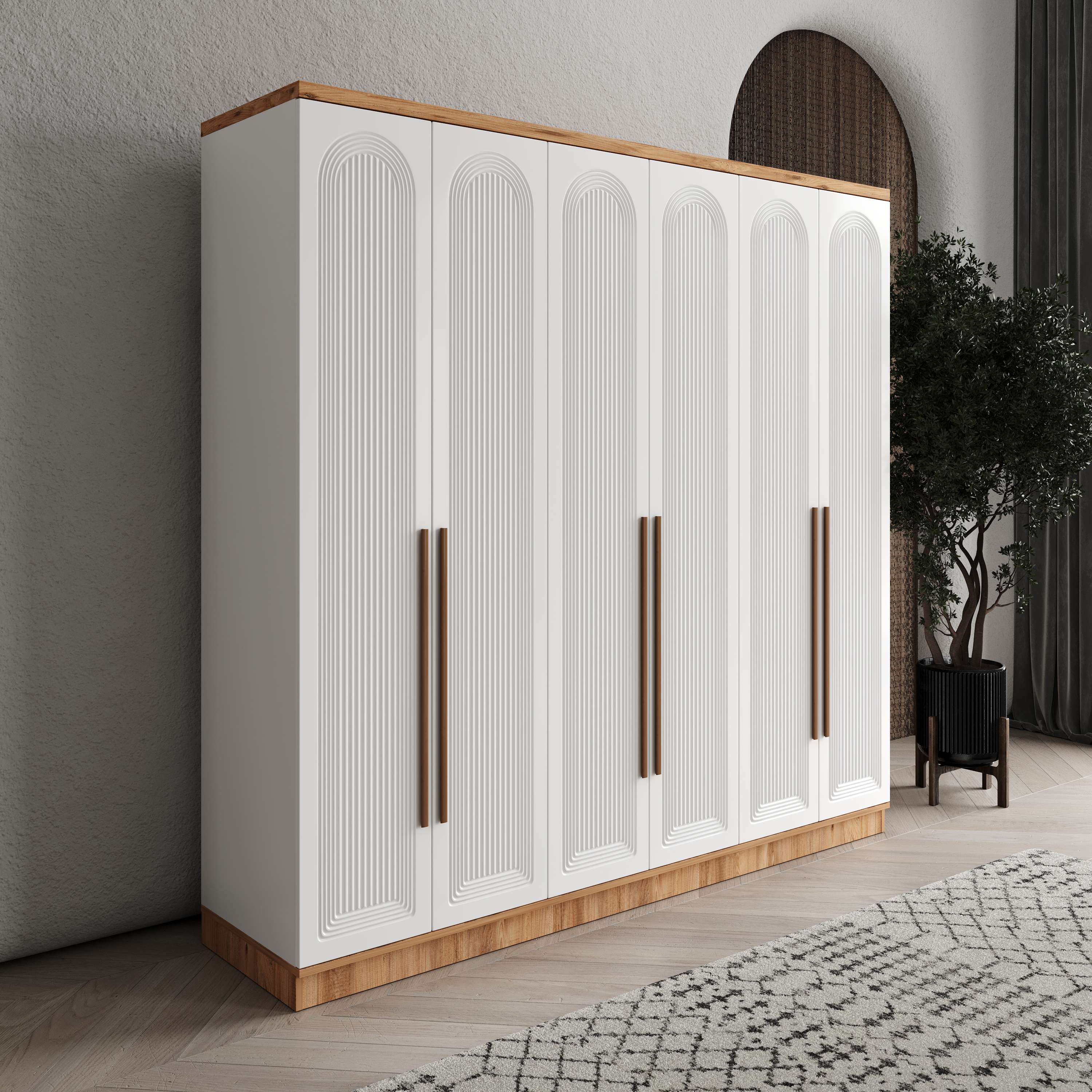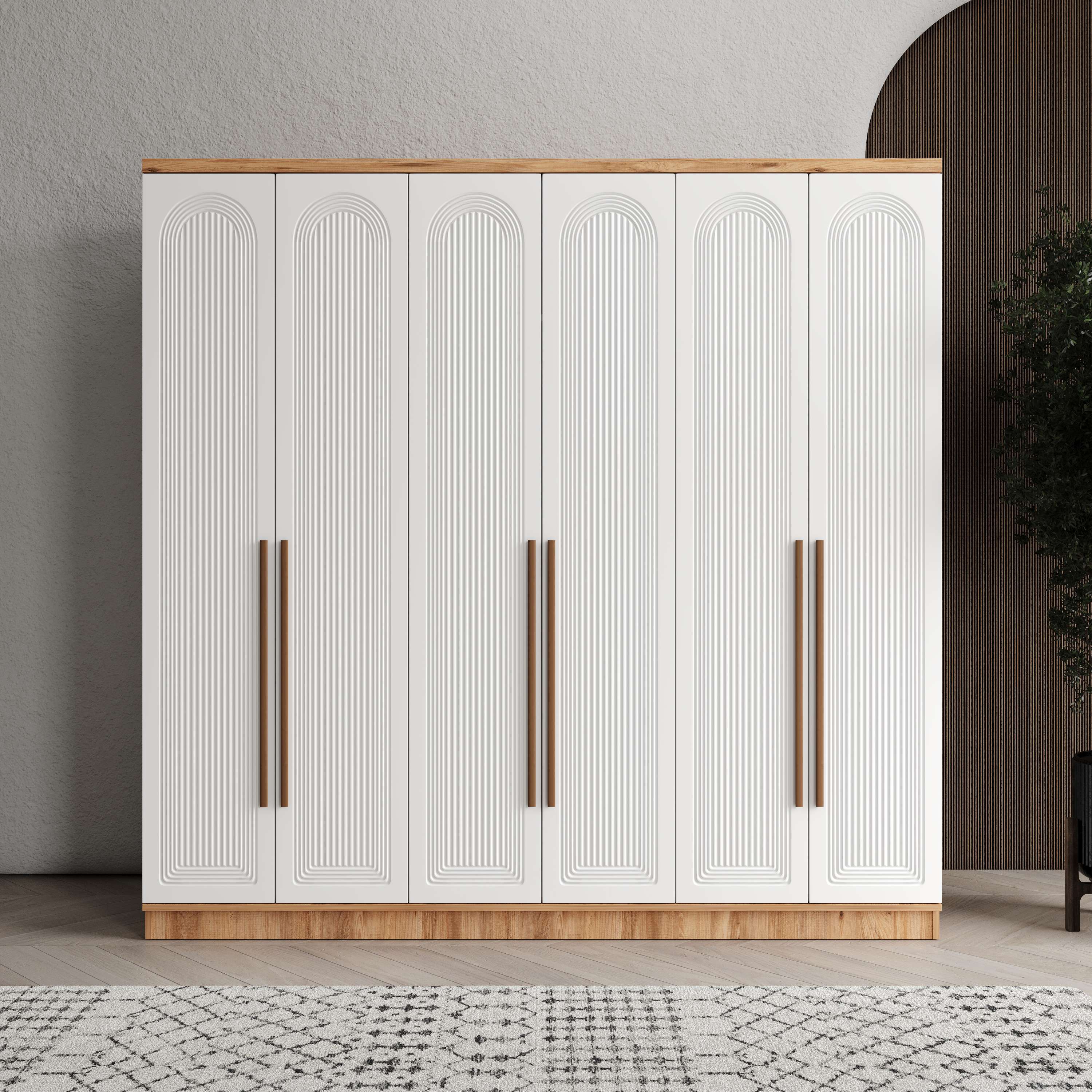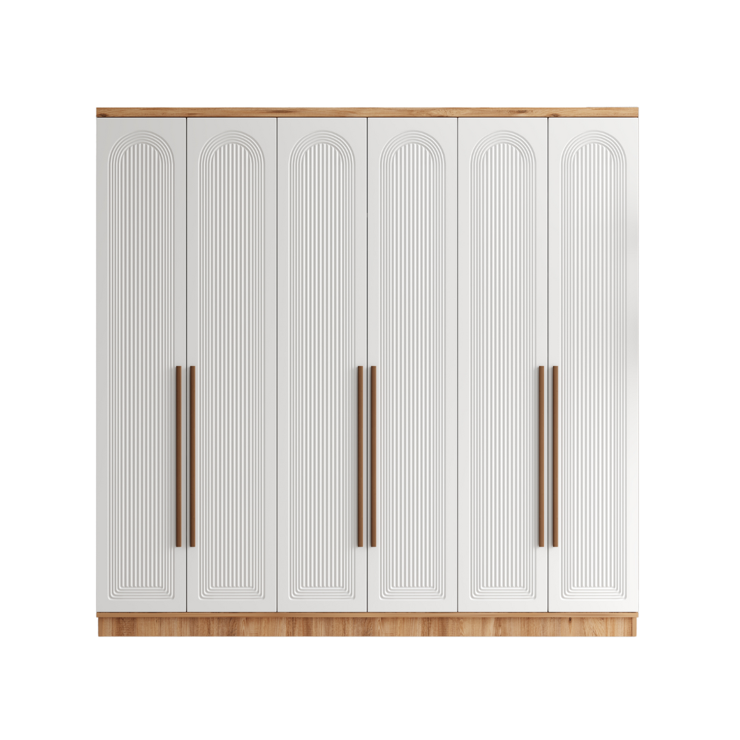 Seronay Rosela 6 Kapaklı Gardırop, yaşam alanında düzen ve estetiği bir araya getiren fonksiyonel bir gardırop modelidir. Depolama ihtiyacına pratik bir çözüm sunarken modern tasarım dili sayesinde yatak odasına dengeli ve şık bir görünüm kazandırır.