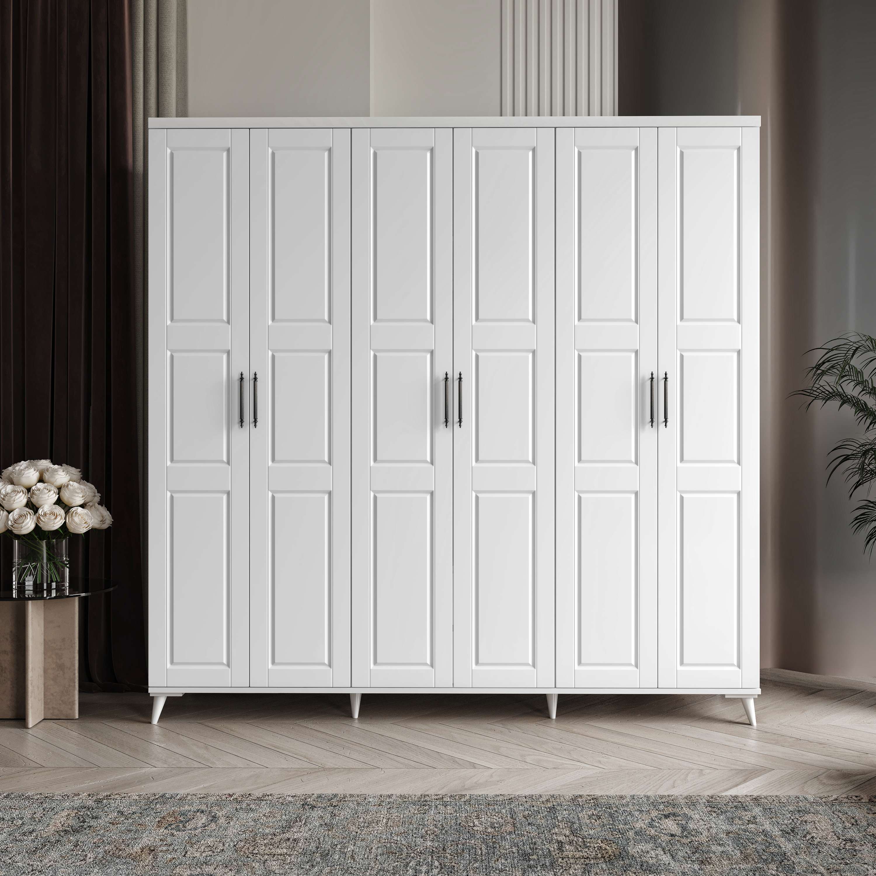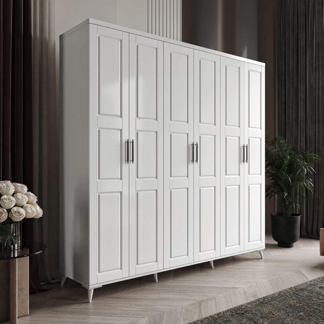 Seronay Siena 6 Kapaklı Beyaz Gardırop, yaşam alanında düzen ve estetiği bir araya getiren fonksiyonel bir gardırop modelidir. Depolama ihtiyacına pratik bir çözüm sunarken modern tasarım dili sayesinde yatak odasına dengeli ve şık bir görünüm kazandırır.