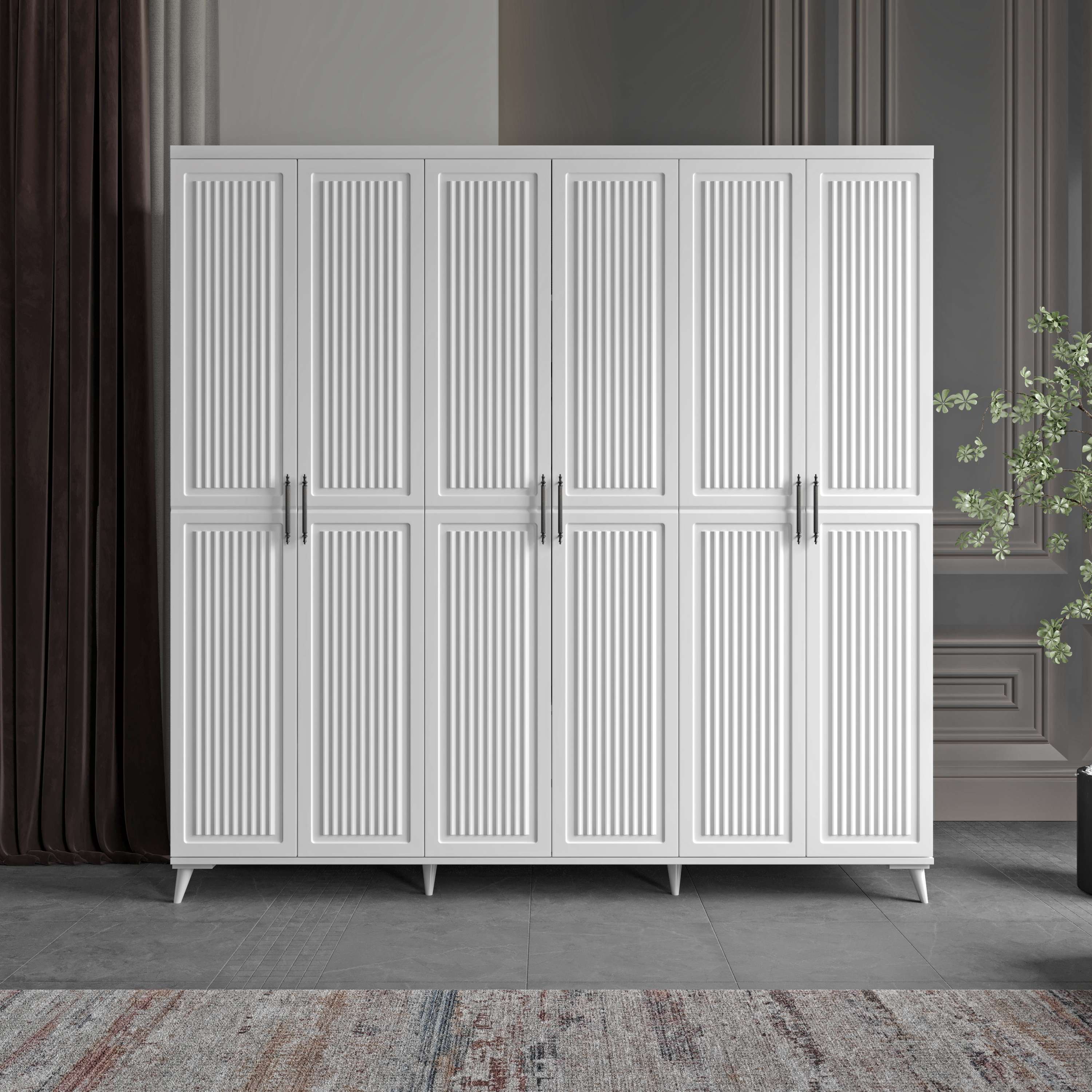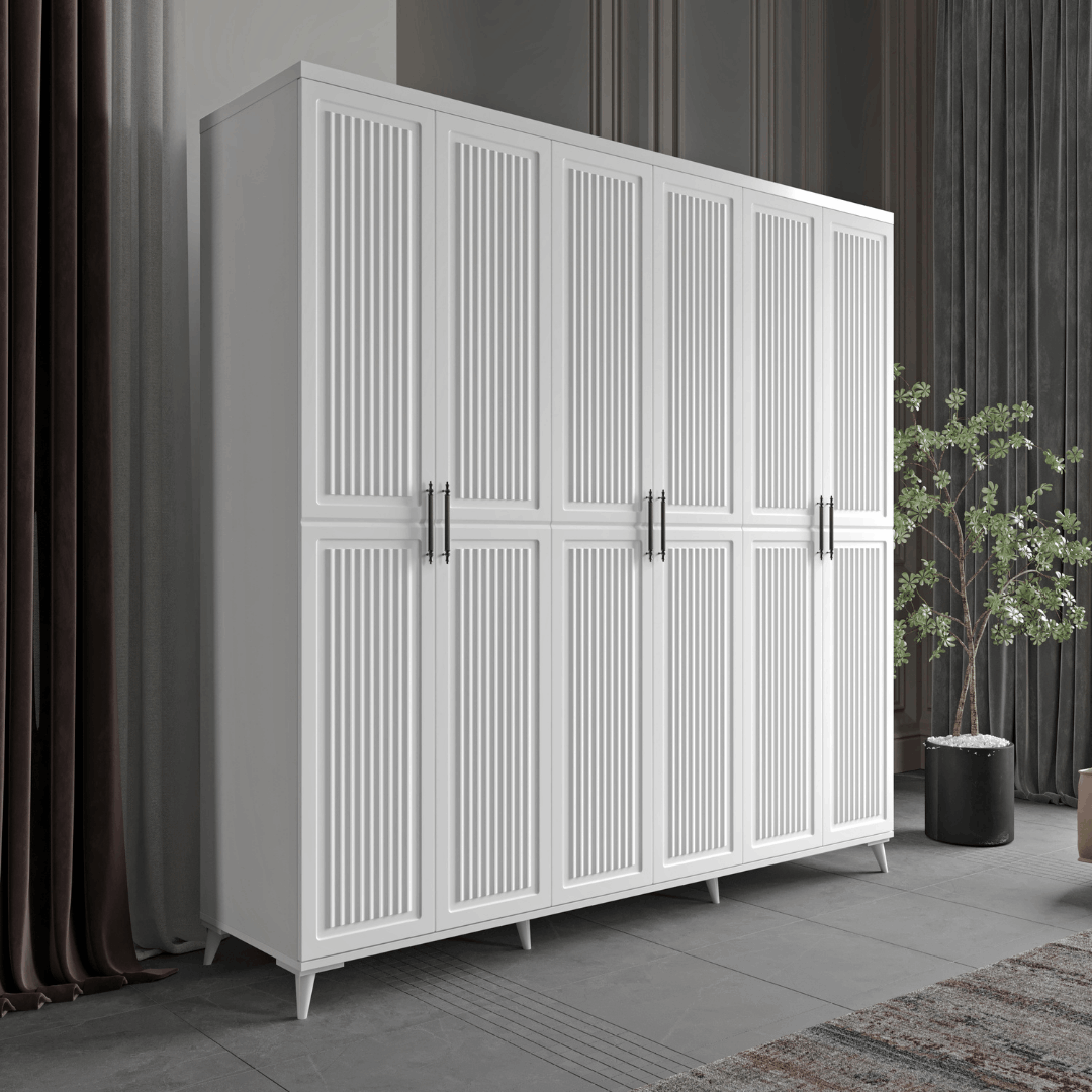 Seronay Vesta 6 Kapaklı Beyaz Gardırop, yaşam alanında düzen ve estetiği bir araya getiren fonksiyonel bir gardırop modelidir. Depolama ihtiyacına pratik bir çözüm sunarken modern tasarım dili sayesinde yatak odasına dengeli ve şık bir görünüm kazandırır.